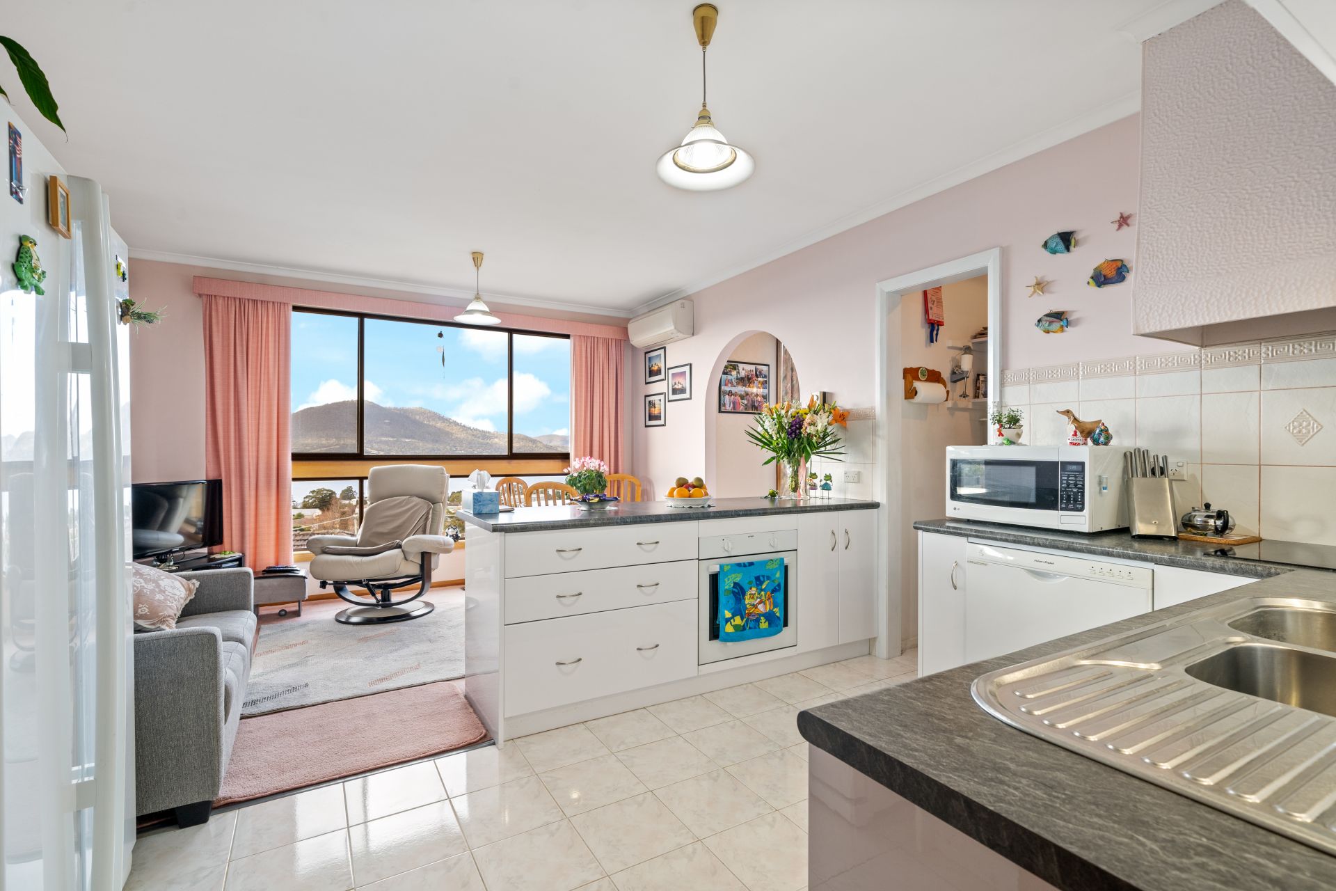 An impressive entry foyer greets you and leads to spacious living areas flooded with natural light. The layout creates a seamless flow, with direct access to a large deck that offers stunning panoramic views. Imagine relaxing or entertaining guests on the deck while immersing yourself in the beauty of the Derwent River and the surrounding mountains. A well equipped kitchen awaits the culinary enthusiast, complete with modern appliances and ample storage solutions. It provides a delightful space for meal preparation and the adjoining formal dining room is ideally situated to cater to both formal dining and casual gatherings.