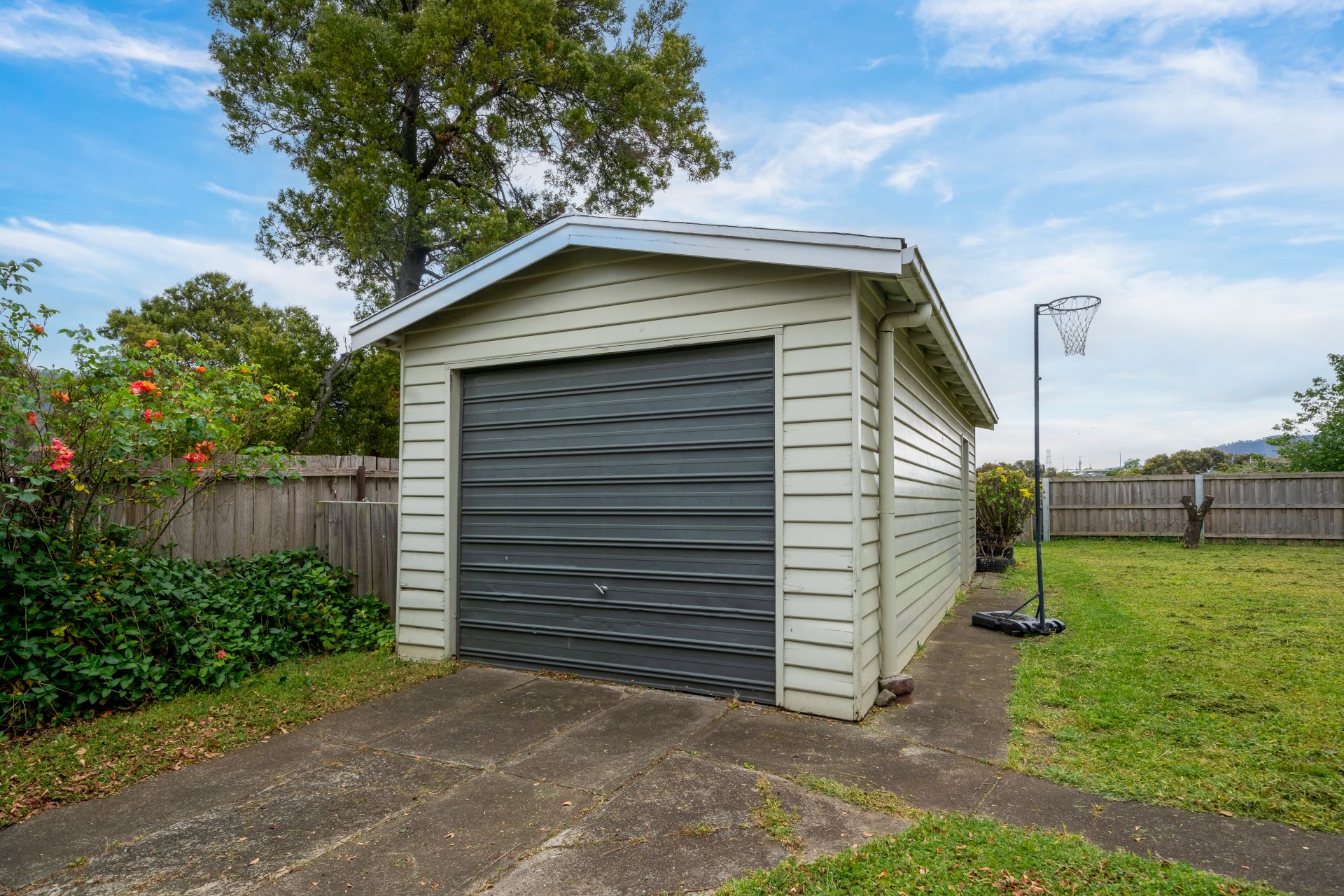 Stepping outside, the property reveals a wealth of features, starting with the fully fenced backyard, a haven for children, pets, or weekend gatherings. Adding to the appeal is a sizeable garage, perfect for secure vehicle storage, a workshop, or additional space for hobbies.
