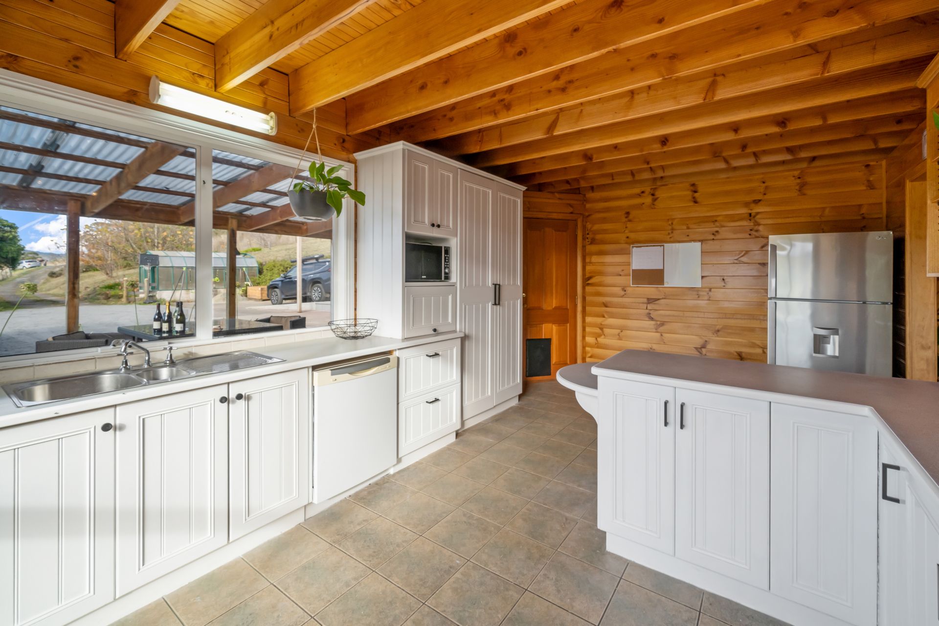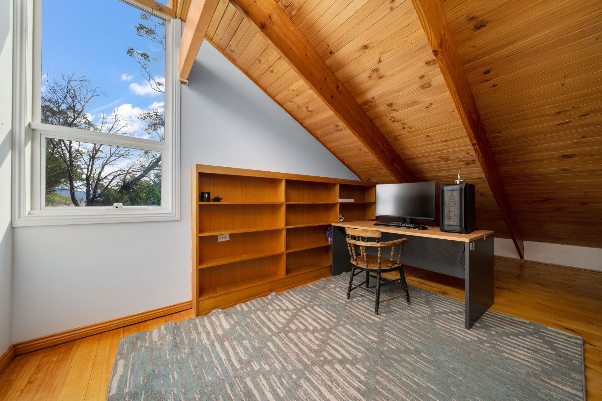 This substantial two storey red cedar home boasts 5 large bedrooms (three with bult-in wardrobes) and 2 big bathrooms. There is an abundance of options for any large growing family, through to a professional couple working from home. The warmth that emanates from the use of timber internally, high ceilings and neutral colours is sensational. The living, dining and kitchen areas take advantage of the impressive views, and the huge living room has a free-standing wood heater providing the warmth and intimacy for the colder winter months with the convenience of a heat pump. The kitchen leads out to the gardens and a large undercover veranda that is simply huge! Entertaining a large group of friends and family for a BBQ on a warm Sunday afternoon would be heaven!