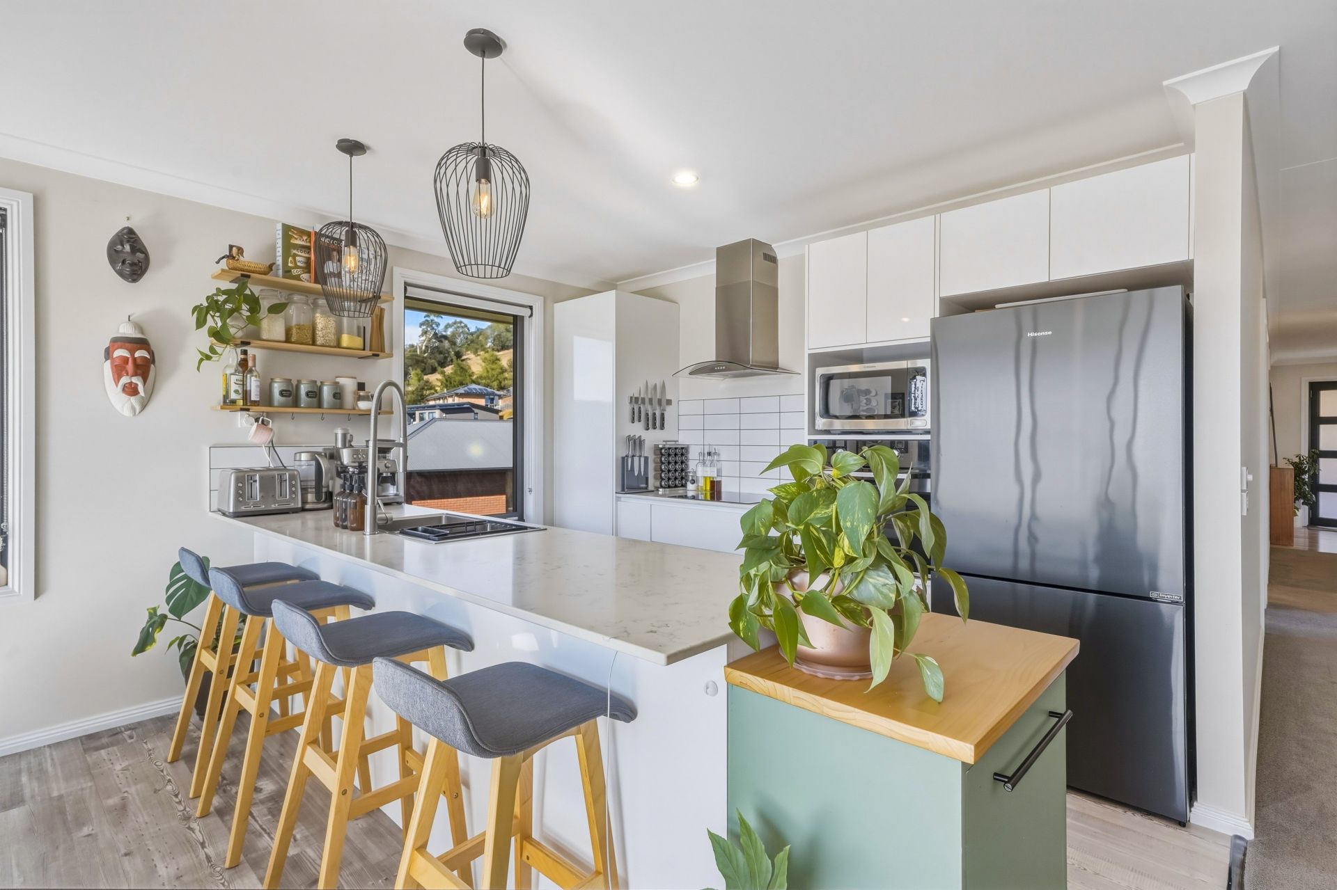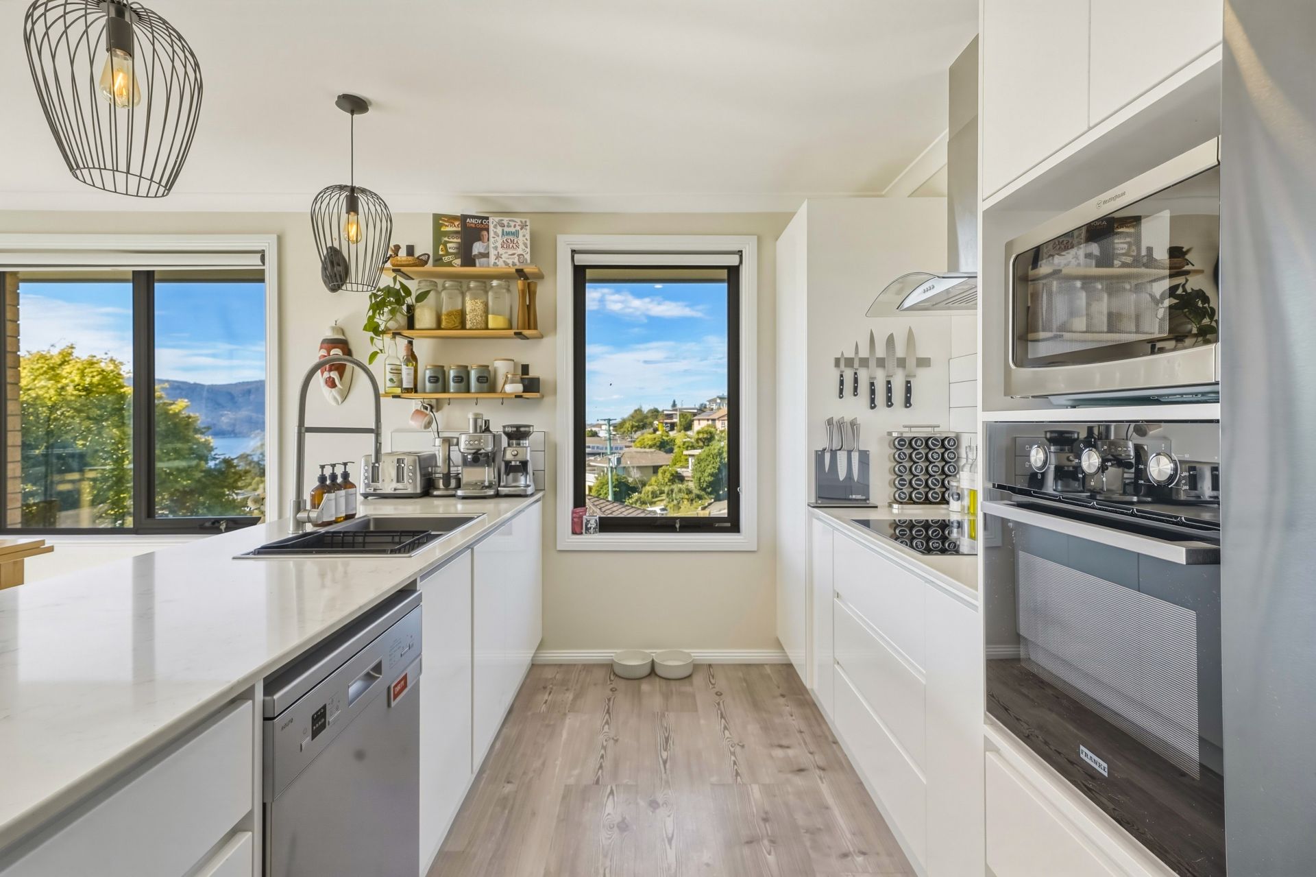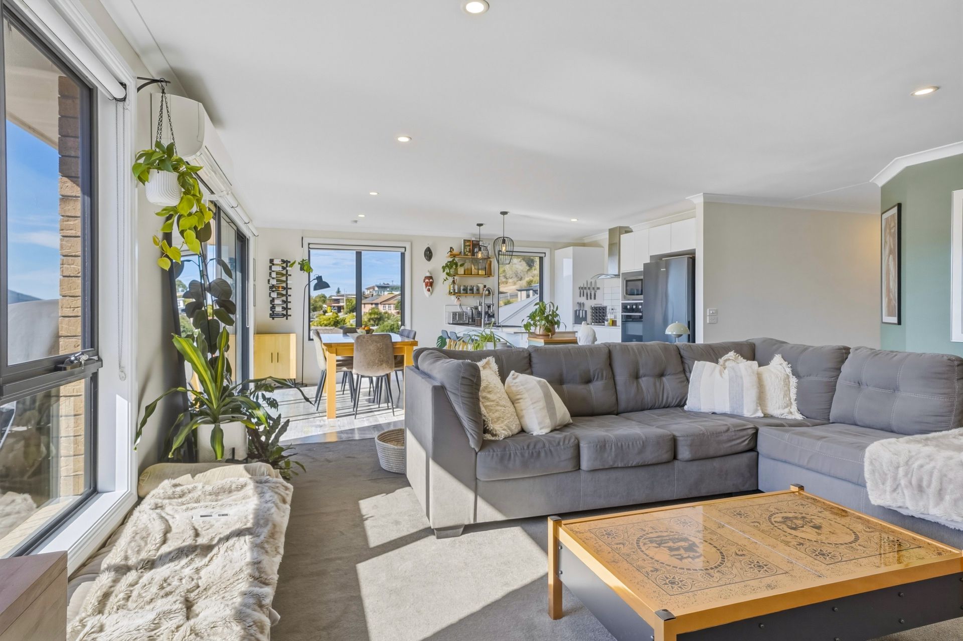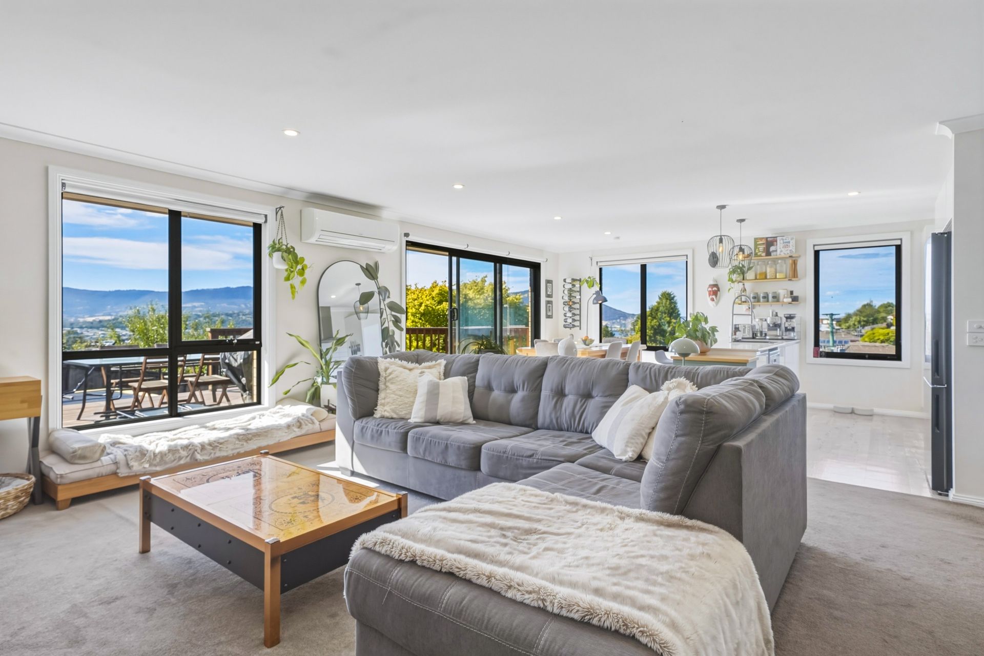 From the moment you step inside, the home feels warm, inviting and wonderfully light-filled. The generous open-plan living and dining area is a real highlight, enhanced by triple-aspect windows that bathe the space in natural light and are cleverly positioned to showcase the home's glorious elevated views. This is a space designed for both relaxation and entertaining, with seamless flow out to the sun-drenched deck where you can unwind, host friends or simply take in the outlook.