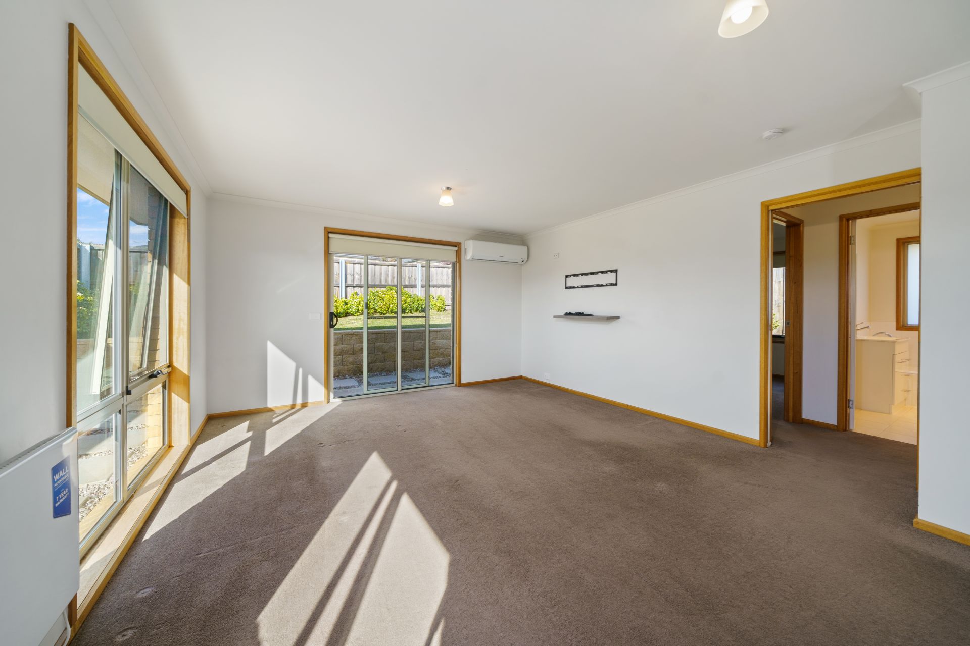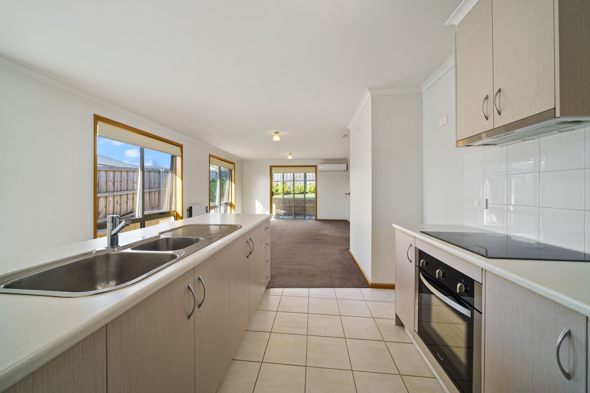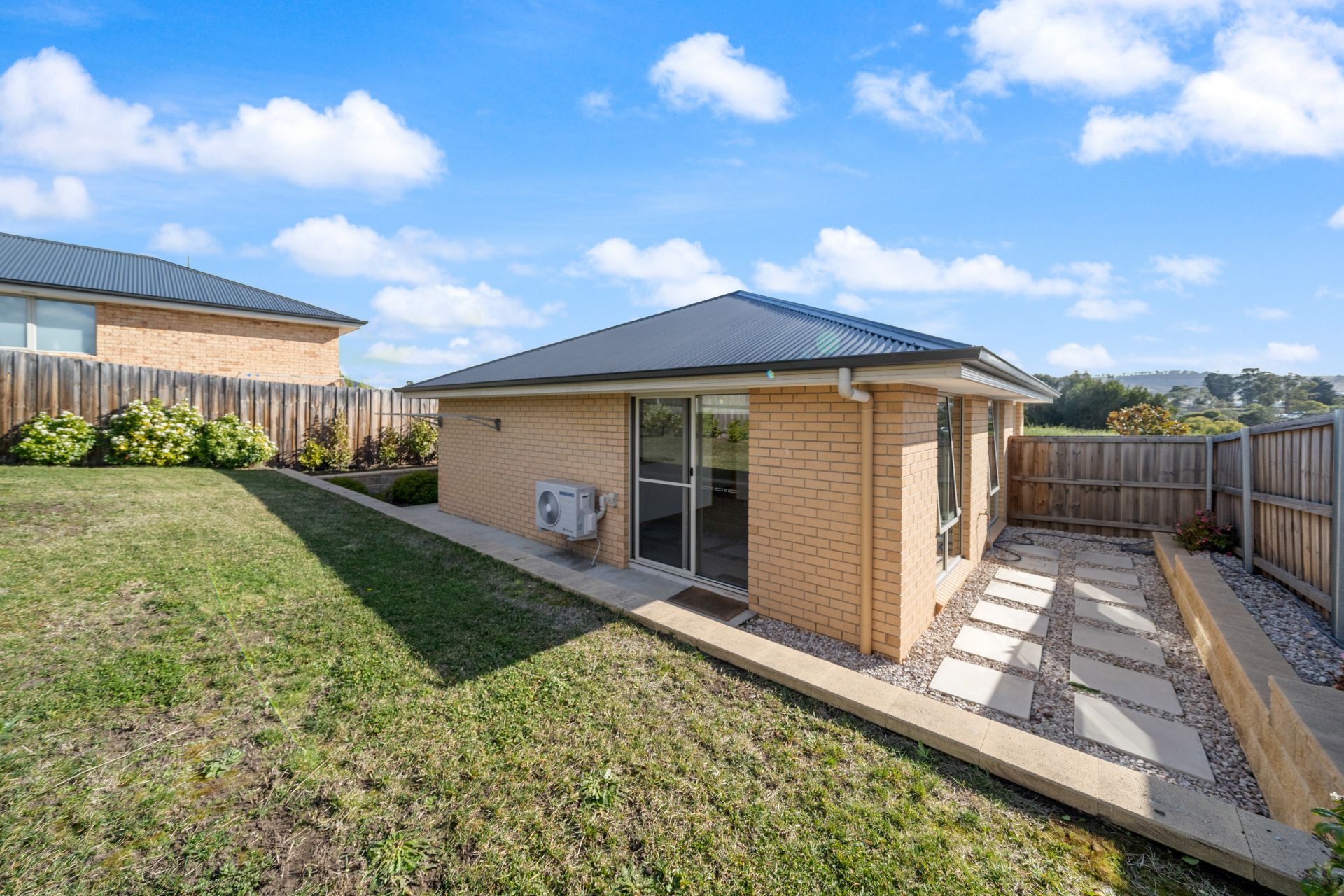 We can enter either by the modern frosted glass front door or the remote-control garage with the added bonus of internal access straight into the fresh kitchen with stainless steel appliances. The kitchen and entry way easily flows into the open main living room with two heating options providing you with year-round comfort and easy access to the rear yard. This area is north facing with heaps of sun coming through the large windows and the sliding door. It is a great place for anyone to entertain family & friends. There are two greats sized bedrooms – both with built ins and in between them is a bright & airy bathroom, well-kept and bigger than normally expected in a home of this size.