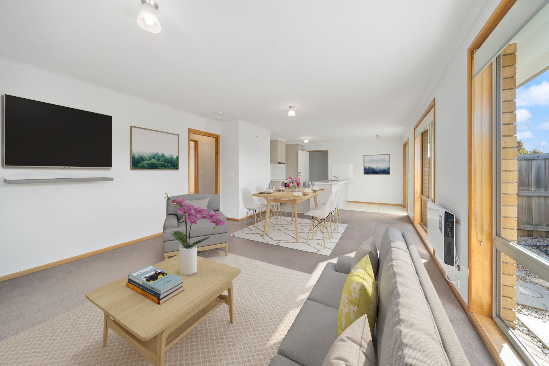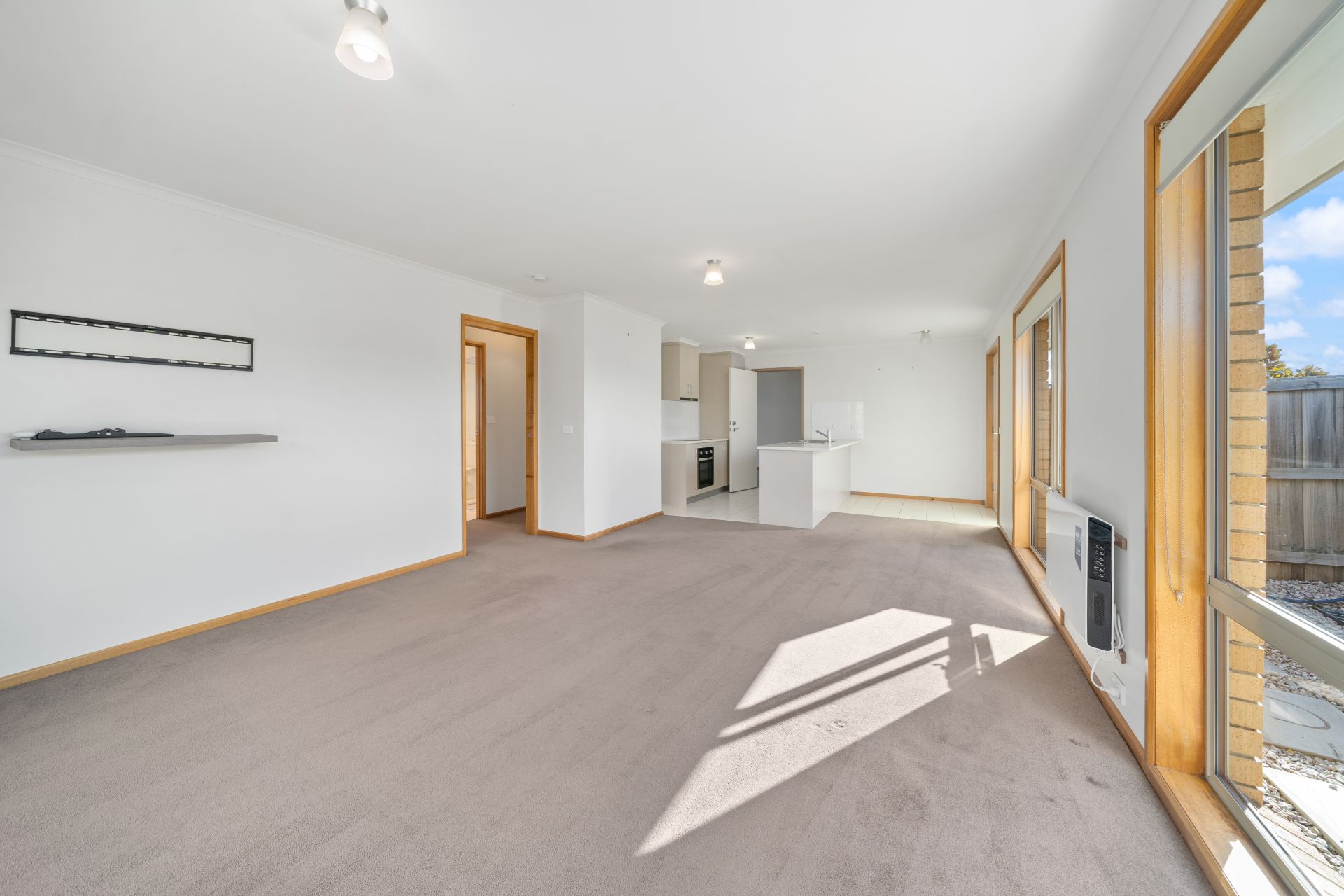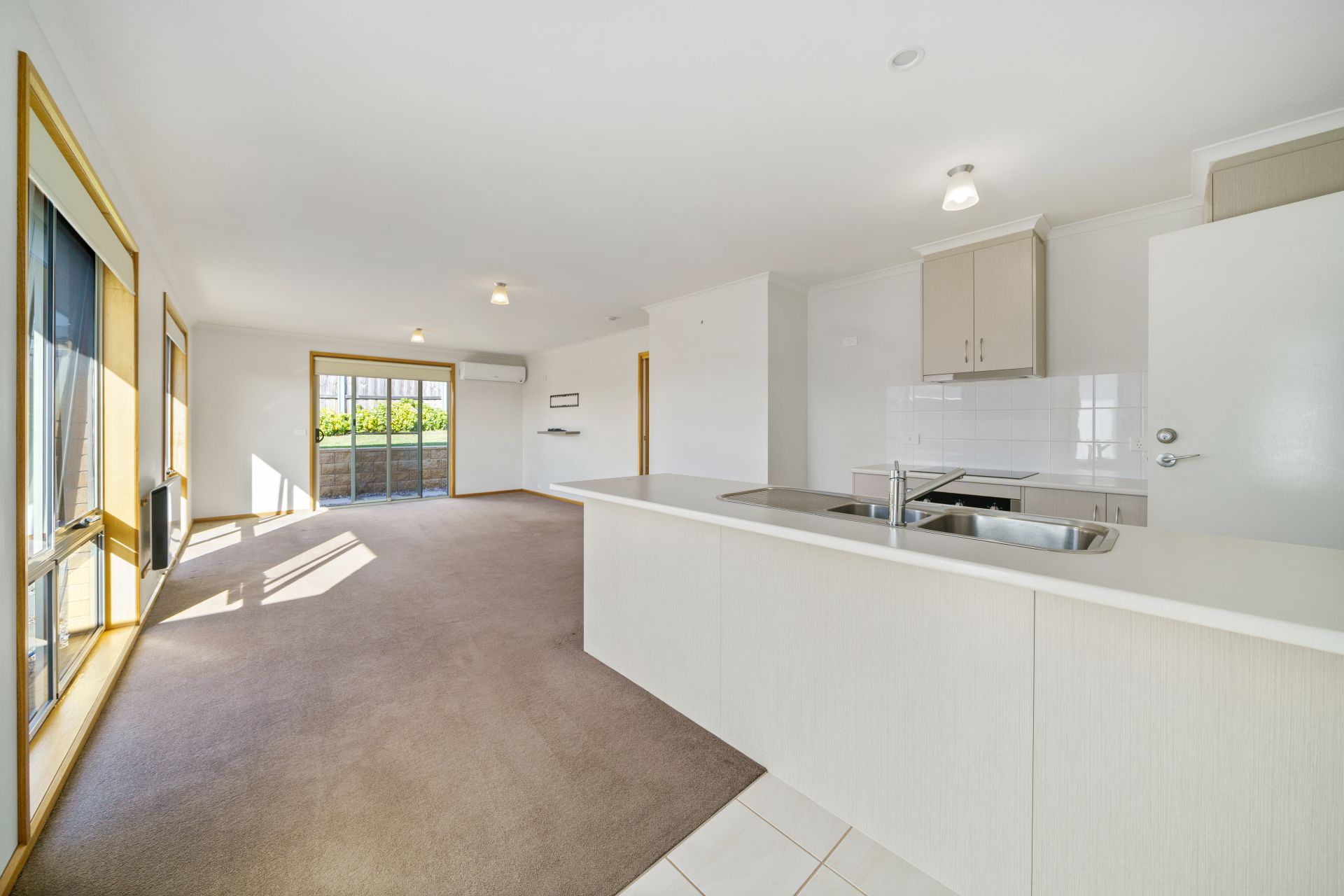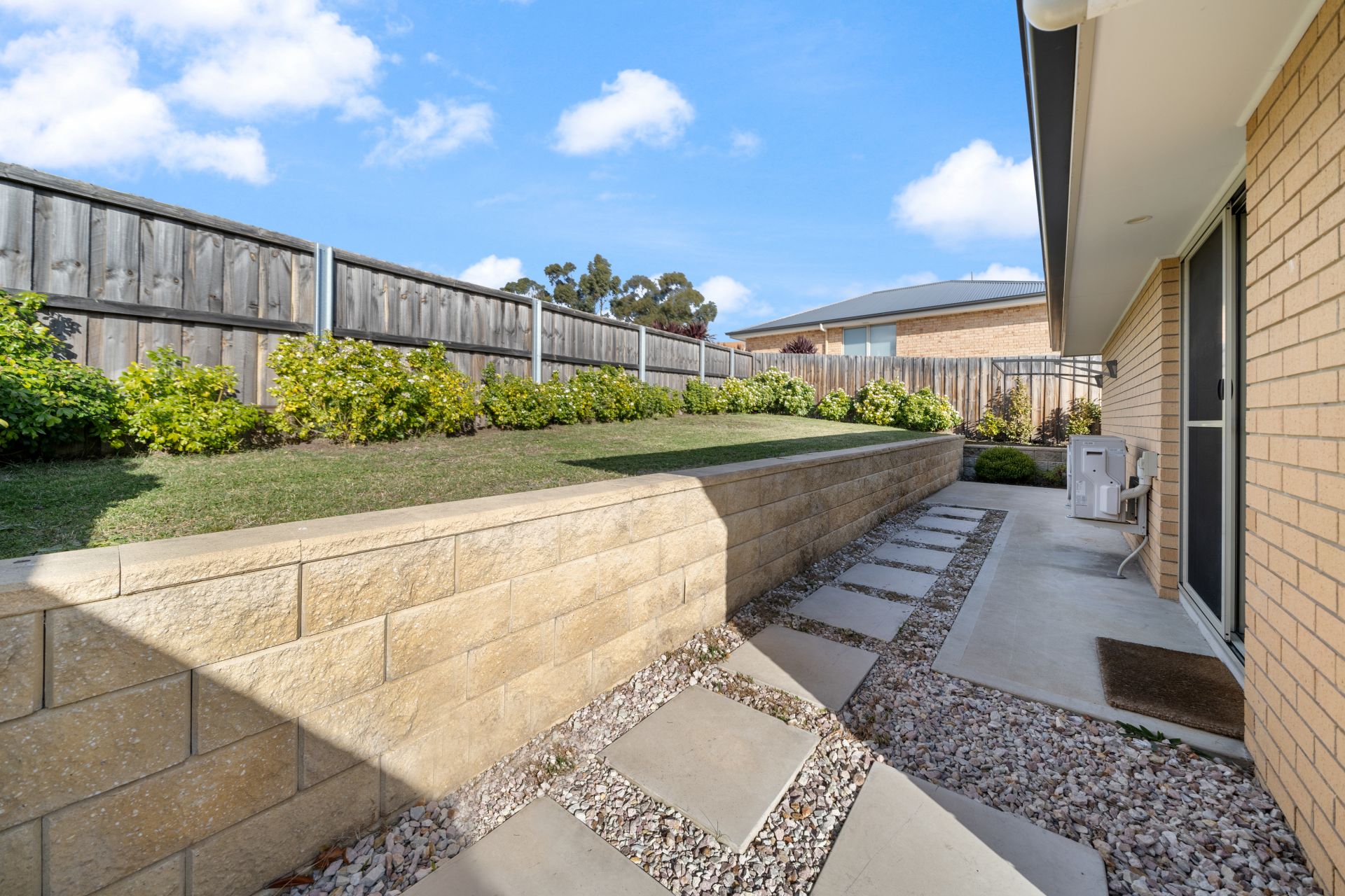 We can enter either by the modern frosted glass front door or the remote-control garage with the added bonus of internal access straight into the fresh kitchen with stainless steel appliances. The kitchen and entry way easily flows into the open main living room with two heating options providing you with year-round comfort and easy access to the rear yard. This area is north facing with heaps of sun coming through the large windows and the sliding door. It is a great place for anyone to entertain family & friends. There are two greats sized bedrooms – both with built ins and in between them is a bright & airy bathroom, well-kept and bigger than normally expected in a home of this size.