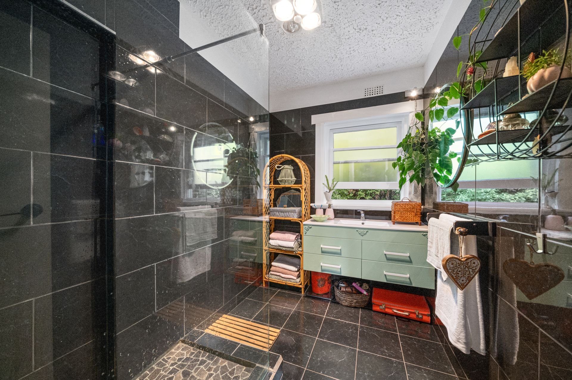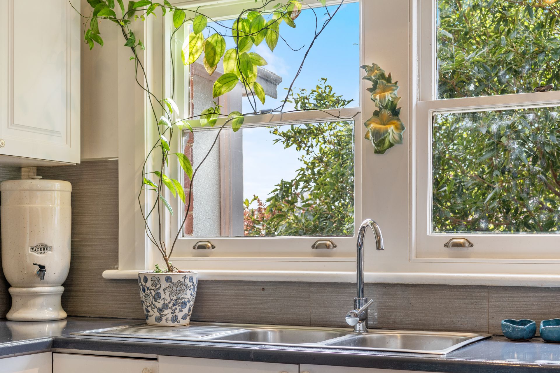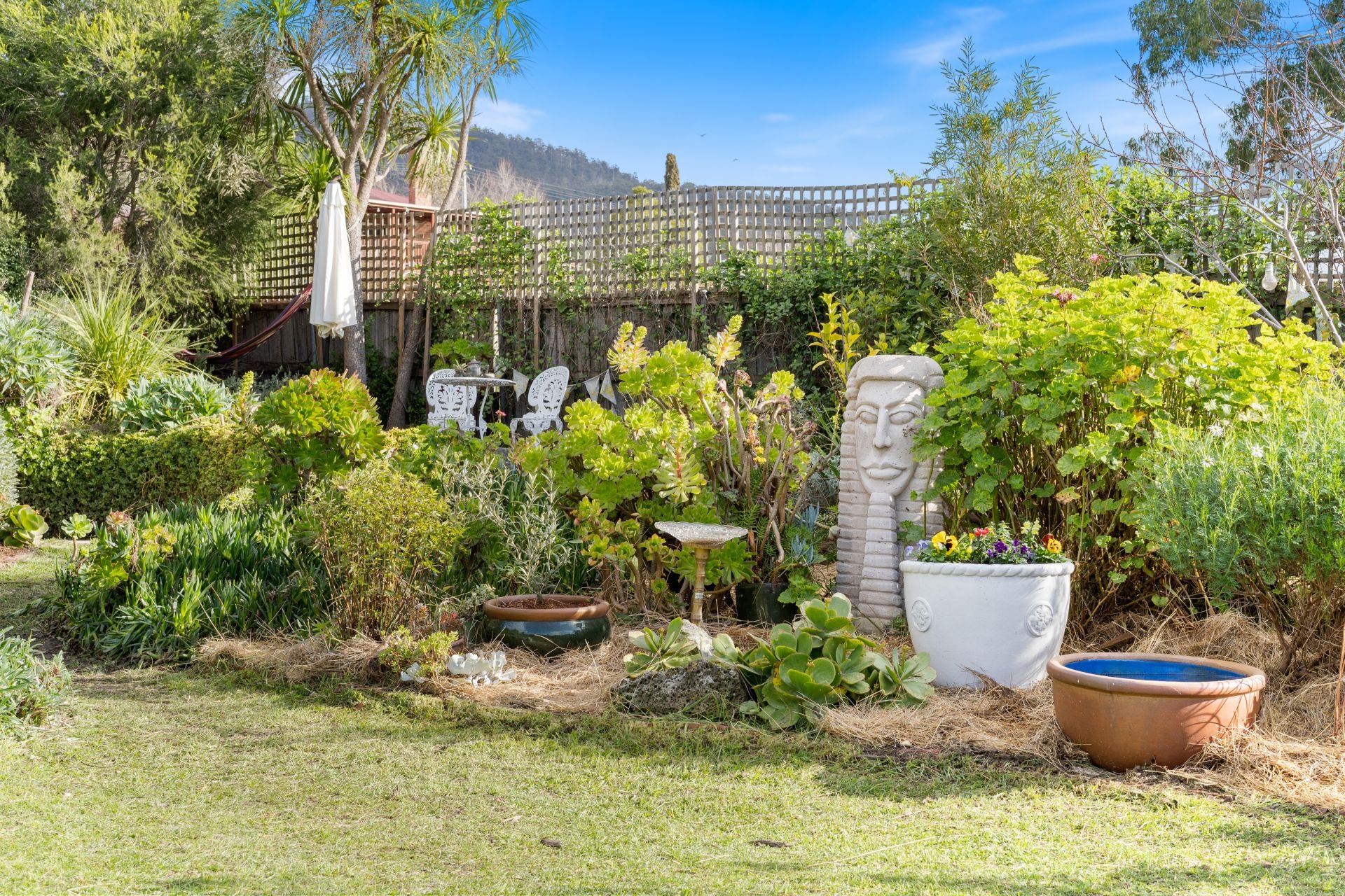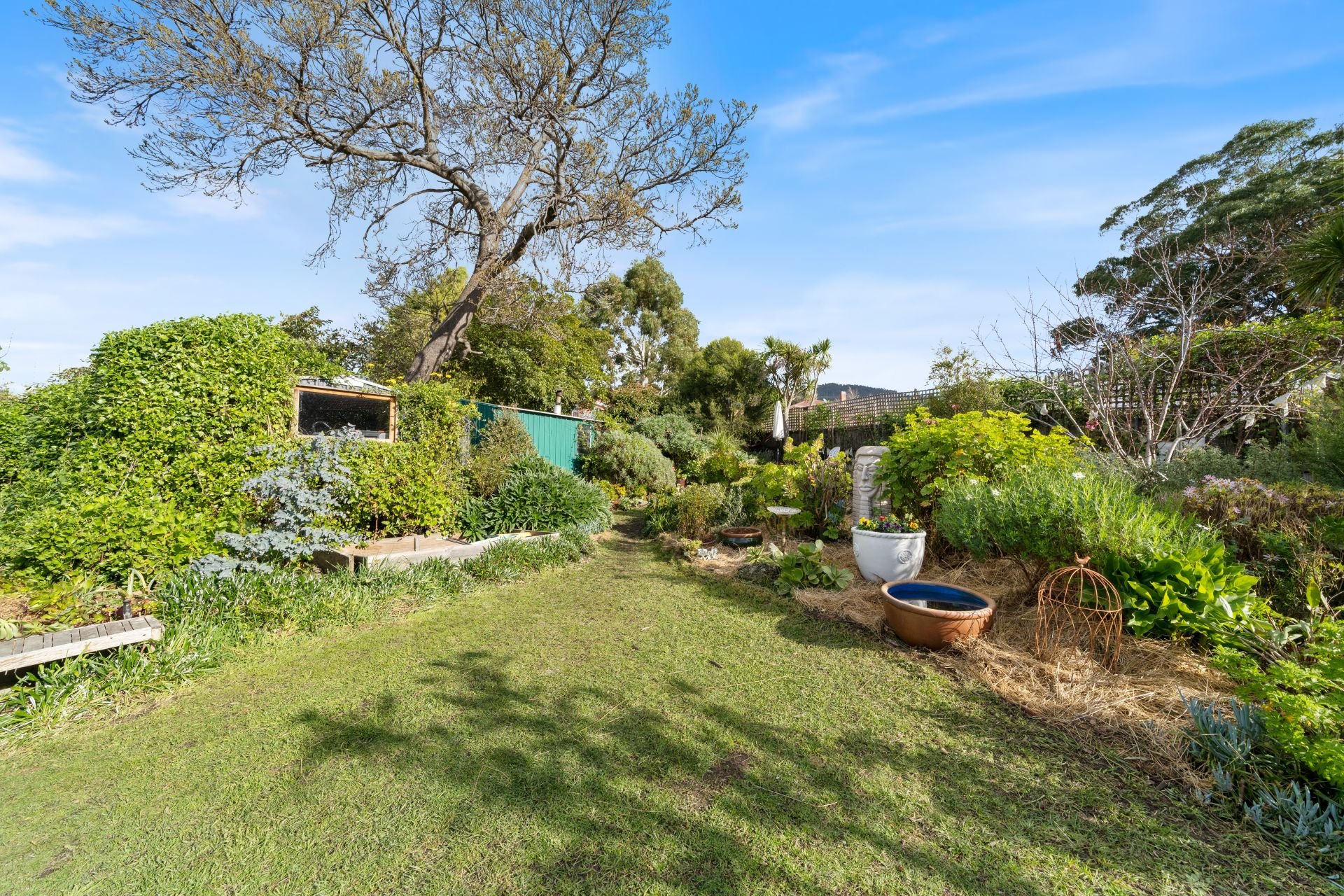 To the rear of the home, the separate laundry room leads out to the back garden - you would be forgiven for thinking you've walked in to an open garden competition display: a veritable oasis of flowering perennials, natives, succulents, cottage shrubbery and mature fruit trees.