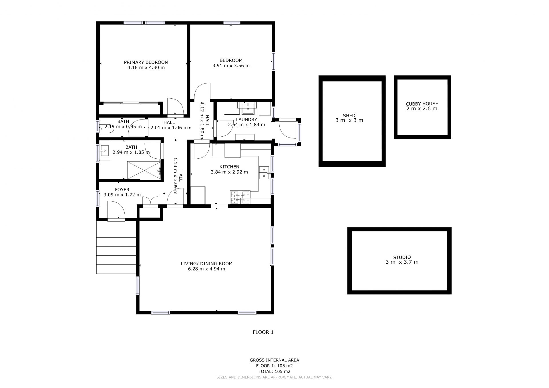 Set on a large block of 860 sqm (approx), there is also a little cubby house, storage shed, studio with fireplace and an outdoor sitting area set up to enjoy social gatherings or perhaps moments of serenity.