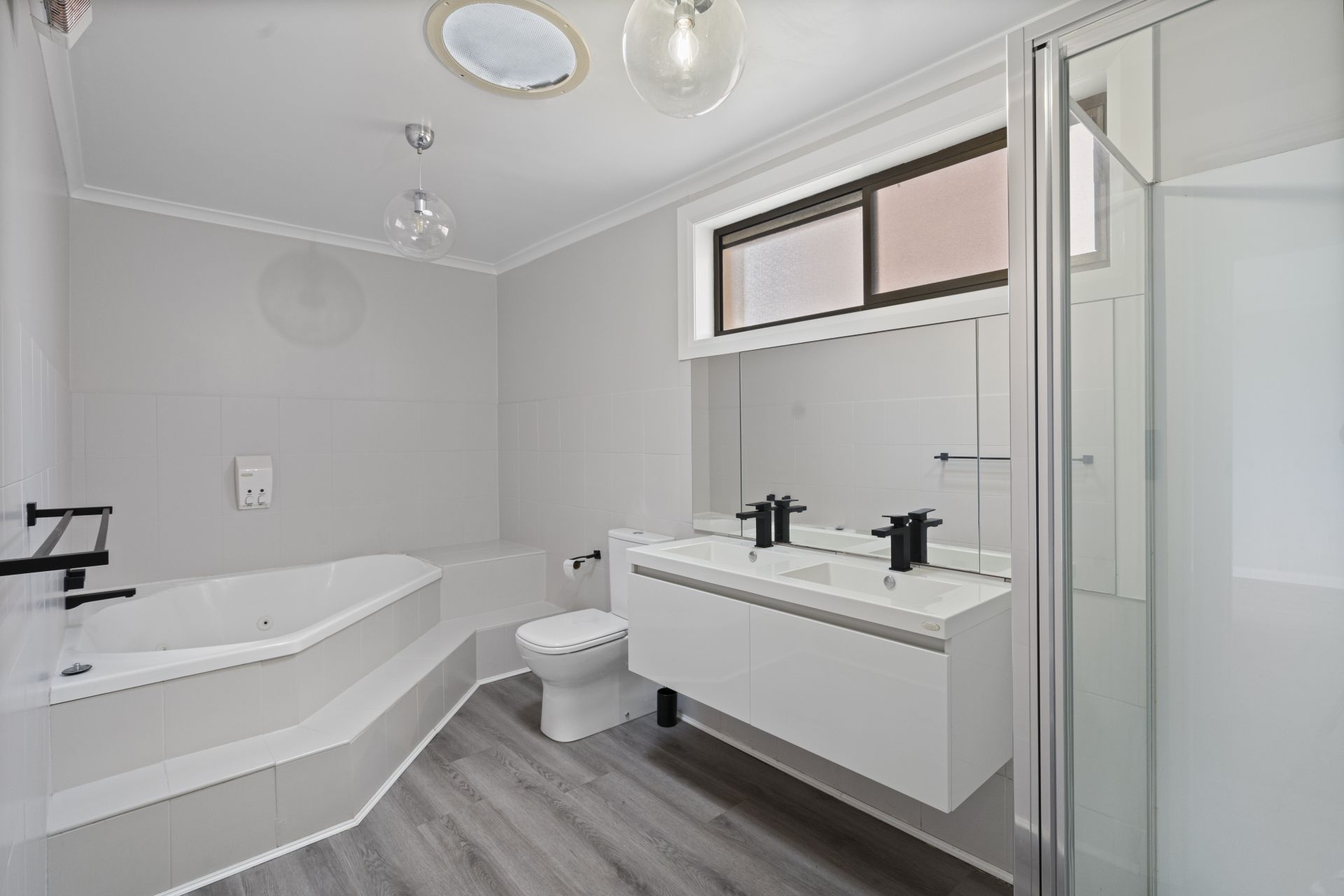 - Spacious bathroom with toilet, corner bath and walk-in shower