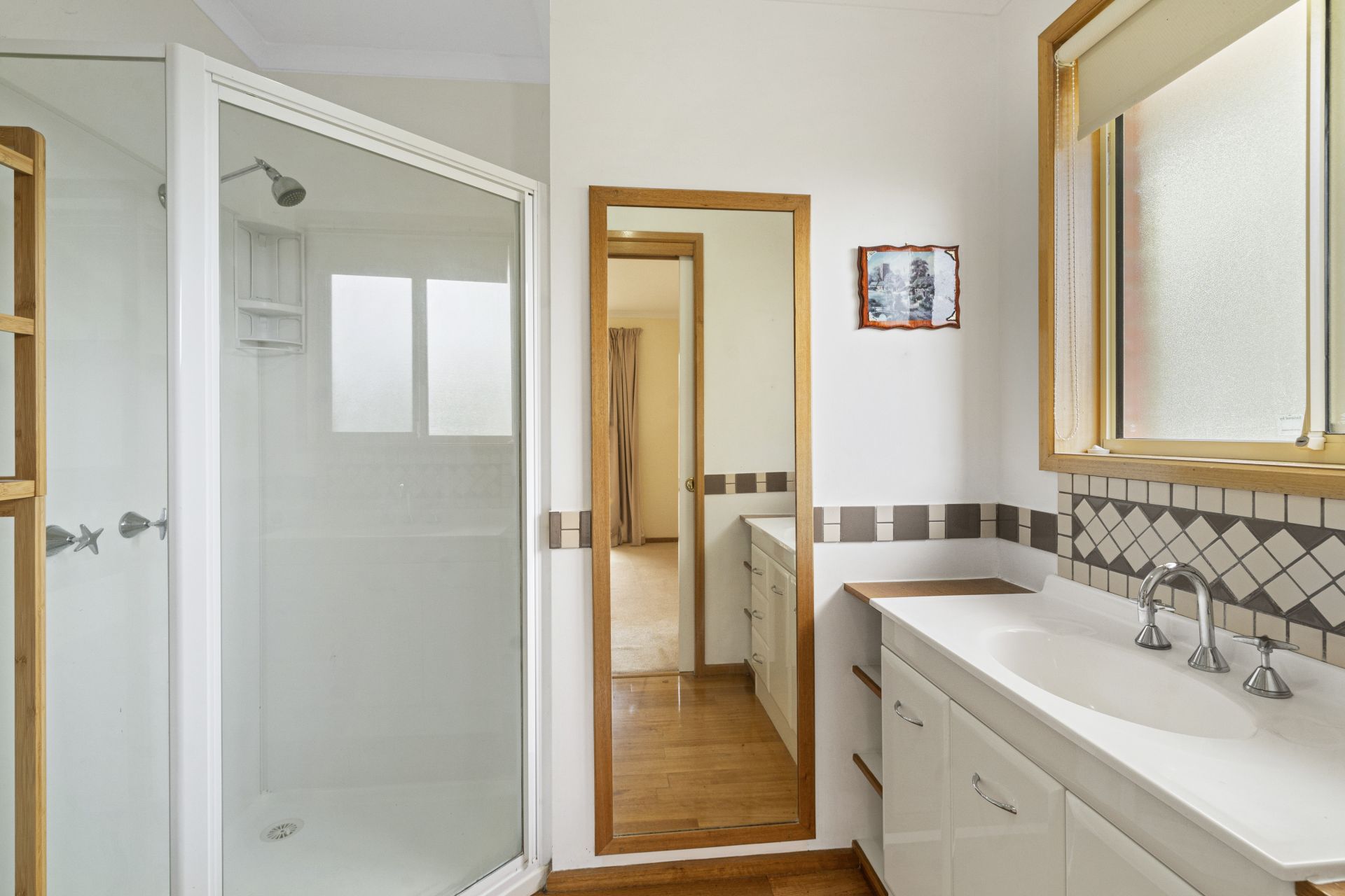 Two additional bedrooms, both with built-in storage and are serviced by a two-way family bathroom featuring a shower, bath and vanity.