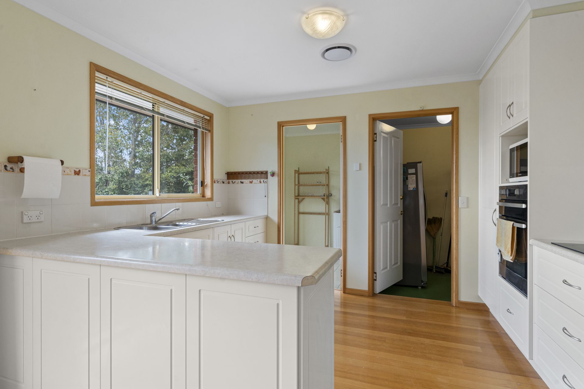 The kitchen is well-equipped with a Westinghouse oven, hotplates, ample bench space and storage.