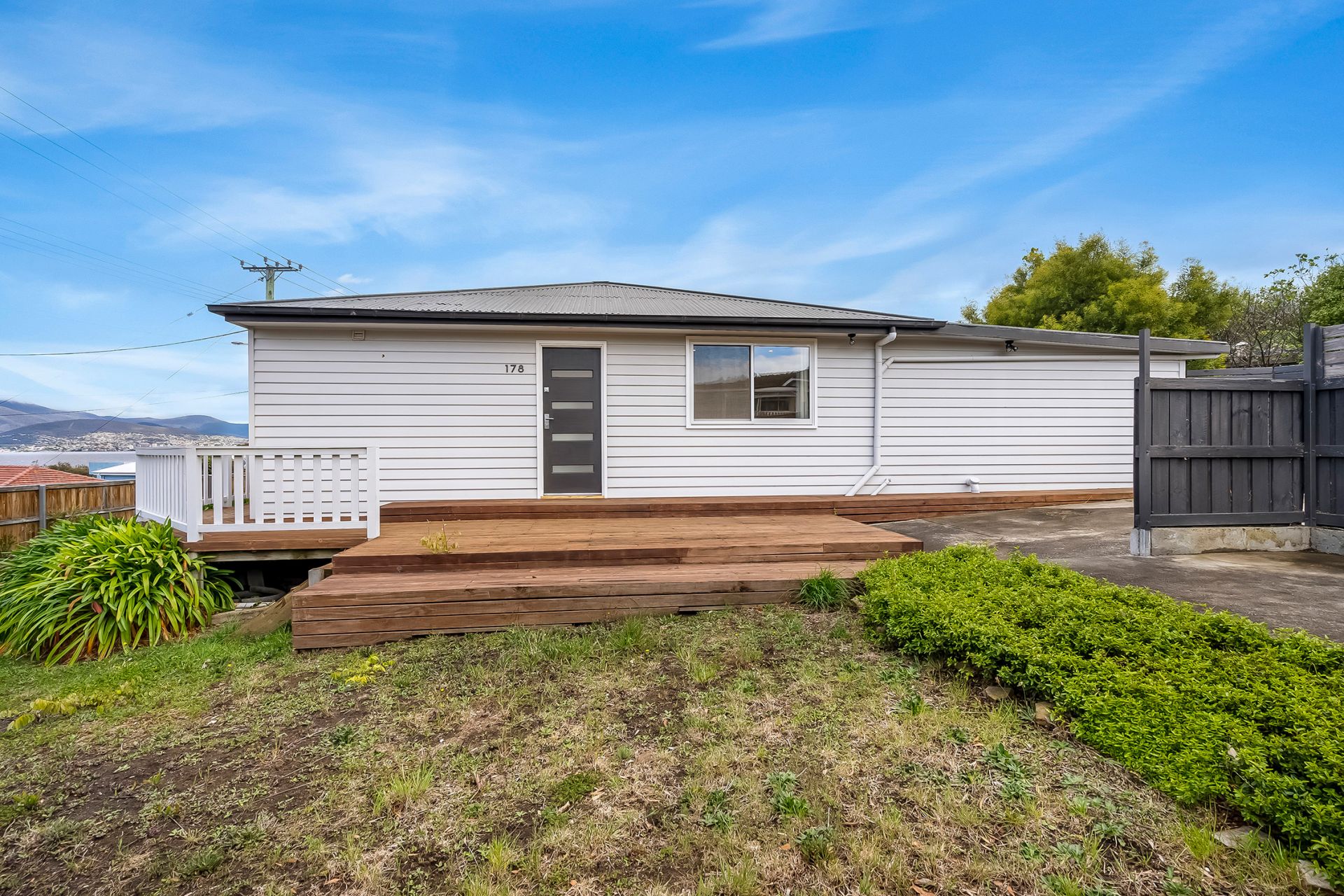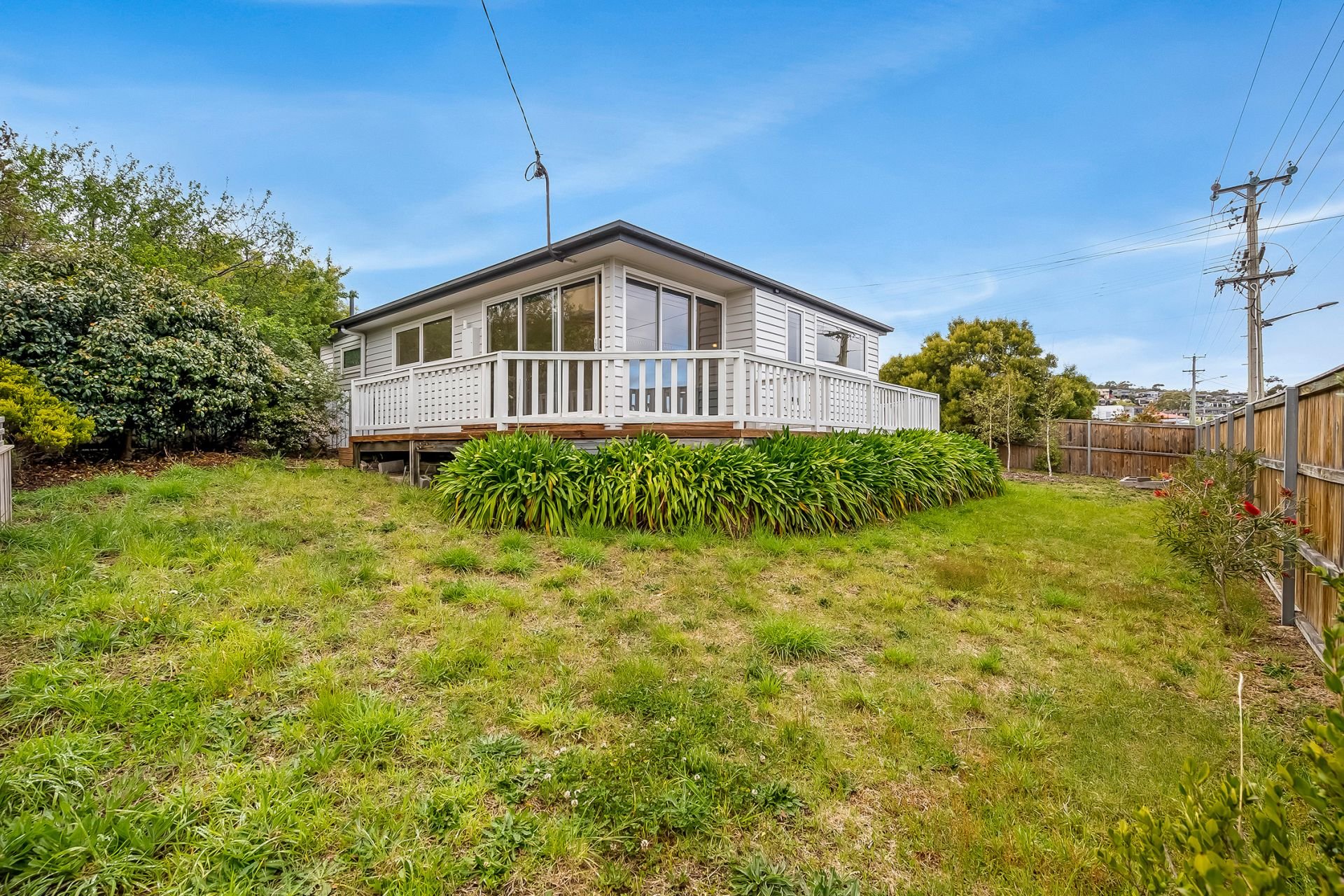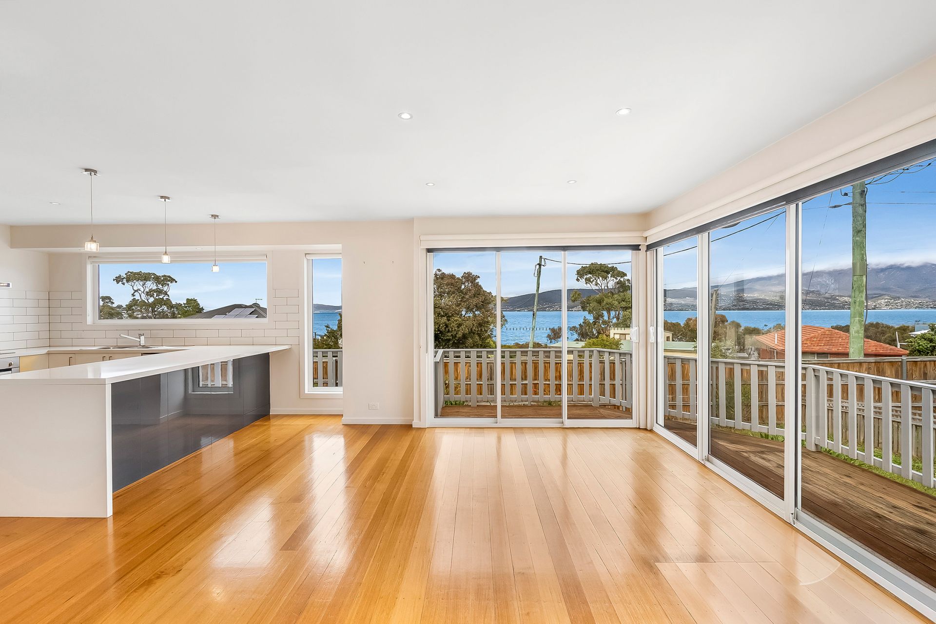 The exterior of the home continues that sea side feel with a wrap around front balcony, and a large fully fenced, Level block perfect for the children and/or fur babies, Capturing stunning views of the Derwent River and the majestic Mount Wellington from all angles.