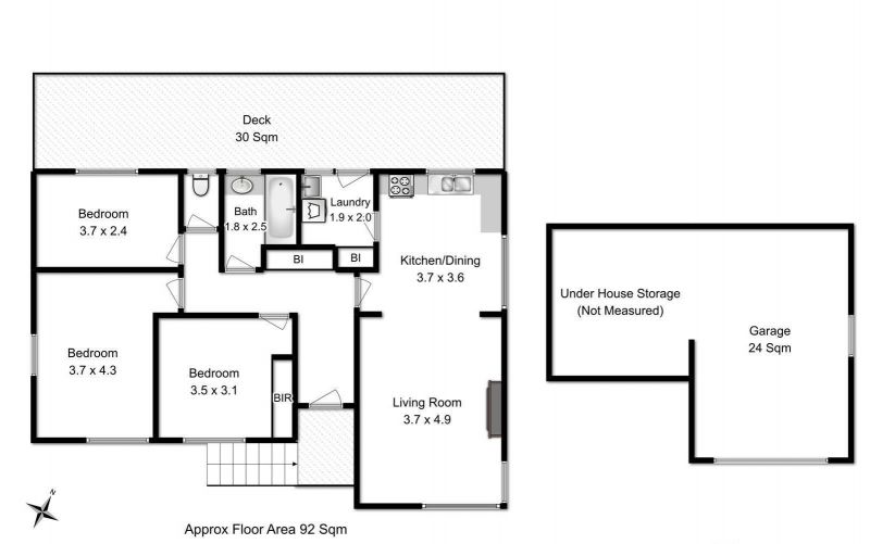 A large under-house single car garage/storage workshop provides secure parking and extensive storage ideal for tools, bikes, or extra belongings.