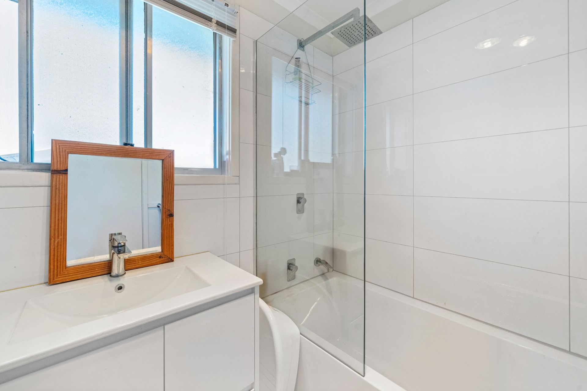 Step inside to discover a bright, airy interior with a spacious lounge room fitted with a reverse cycle split system, ensuring year-round comfort. The crisp white bathroom offers a clean, modern feel, and is complemented by a separate toilet for added practicality.