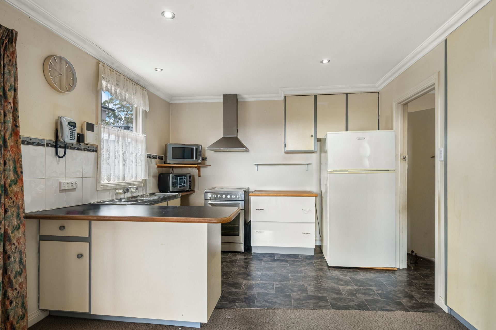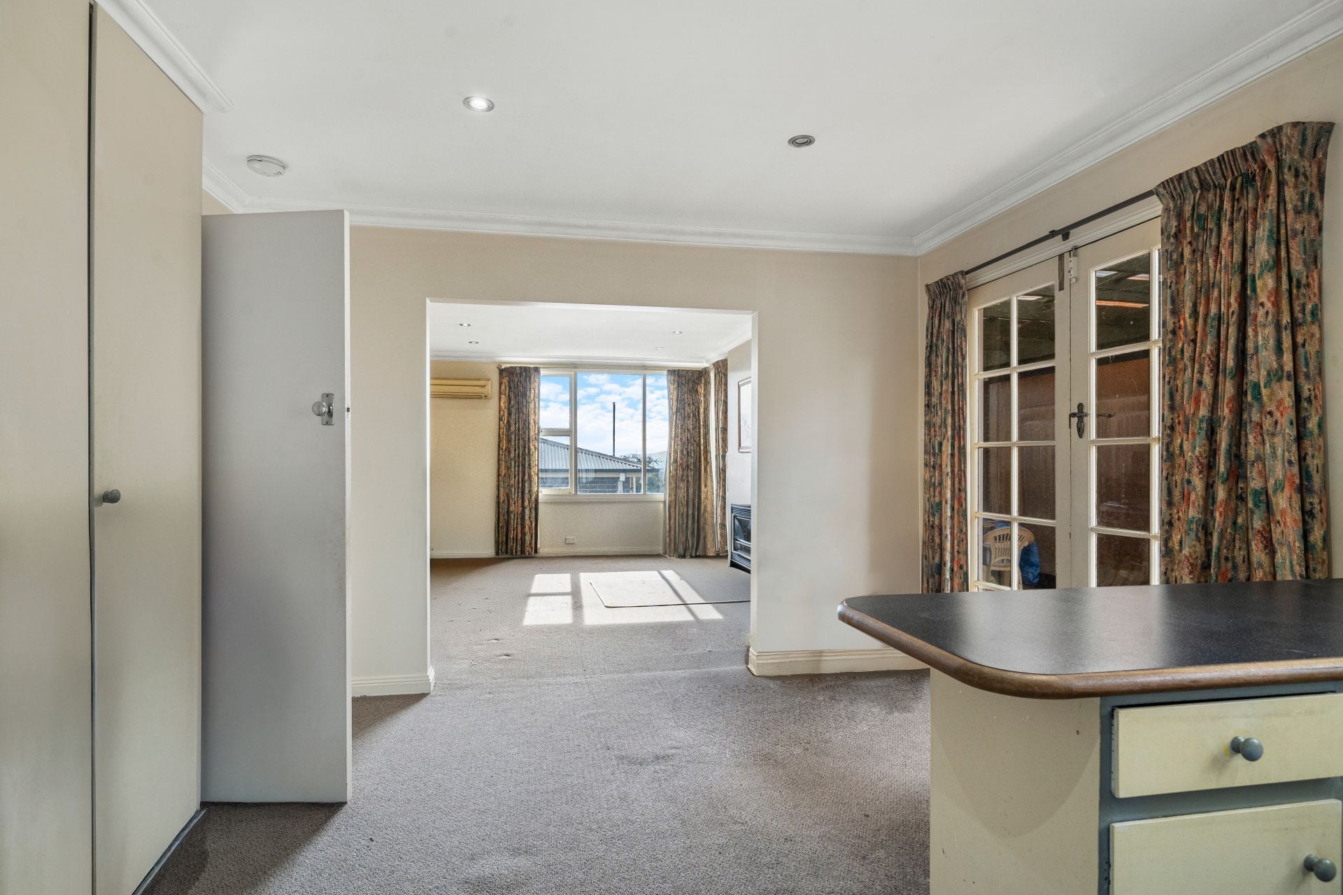 Step inside to discover a spacious open-plan living and dining area, with distant water views enhancing the sense of space. The kitchen boasts ample bench and cupboard space, while French doors from the dining area open to a cosy private undercover outdoor entertaining space—perfect for year-round enjoyment.