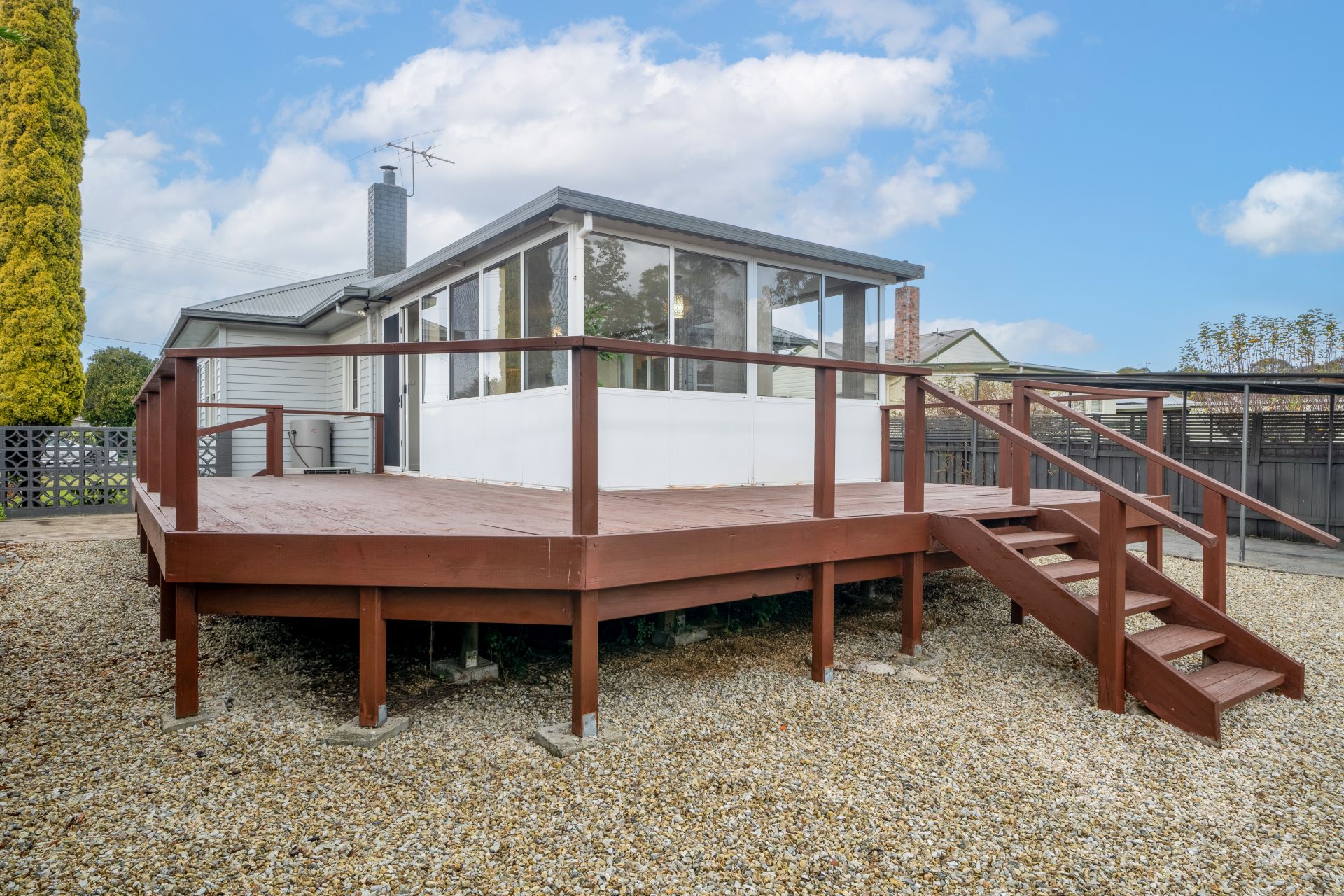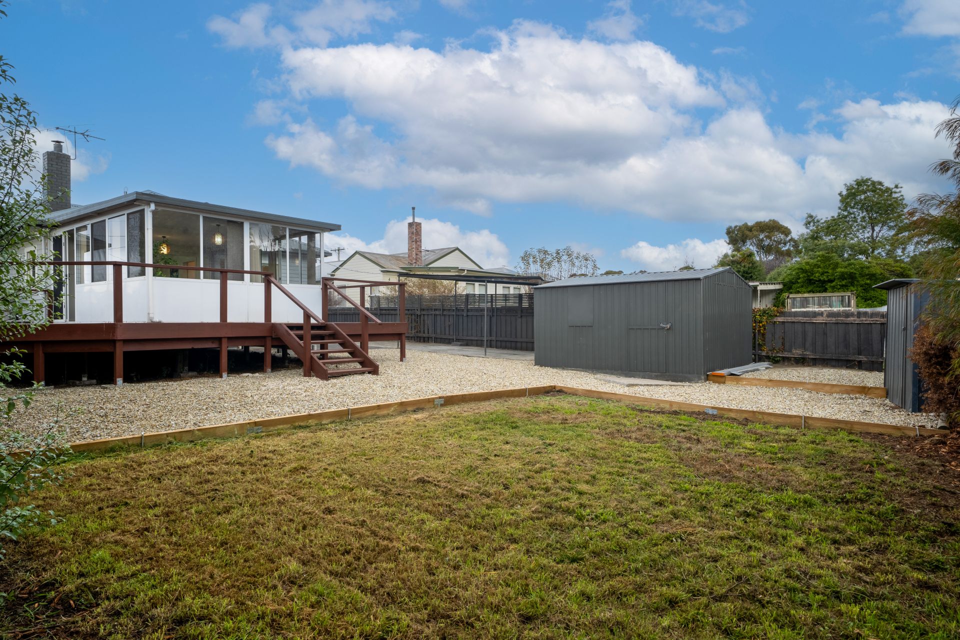 The exterior of the property is equally impressive. Stepping out from the living area you wull find a large pricate decked space perfect for entertaing guests or hosting family barbeques. The low-maintenance fenced yard ensures privacy and security, while the garden shed offers additional storage for your outdoor needs. A convenient carport provides sheltered parking, protecting your vehicle from the elements.