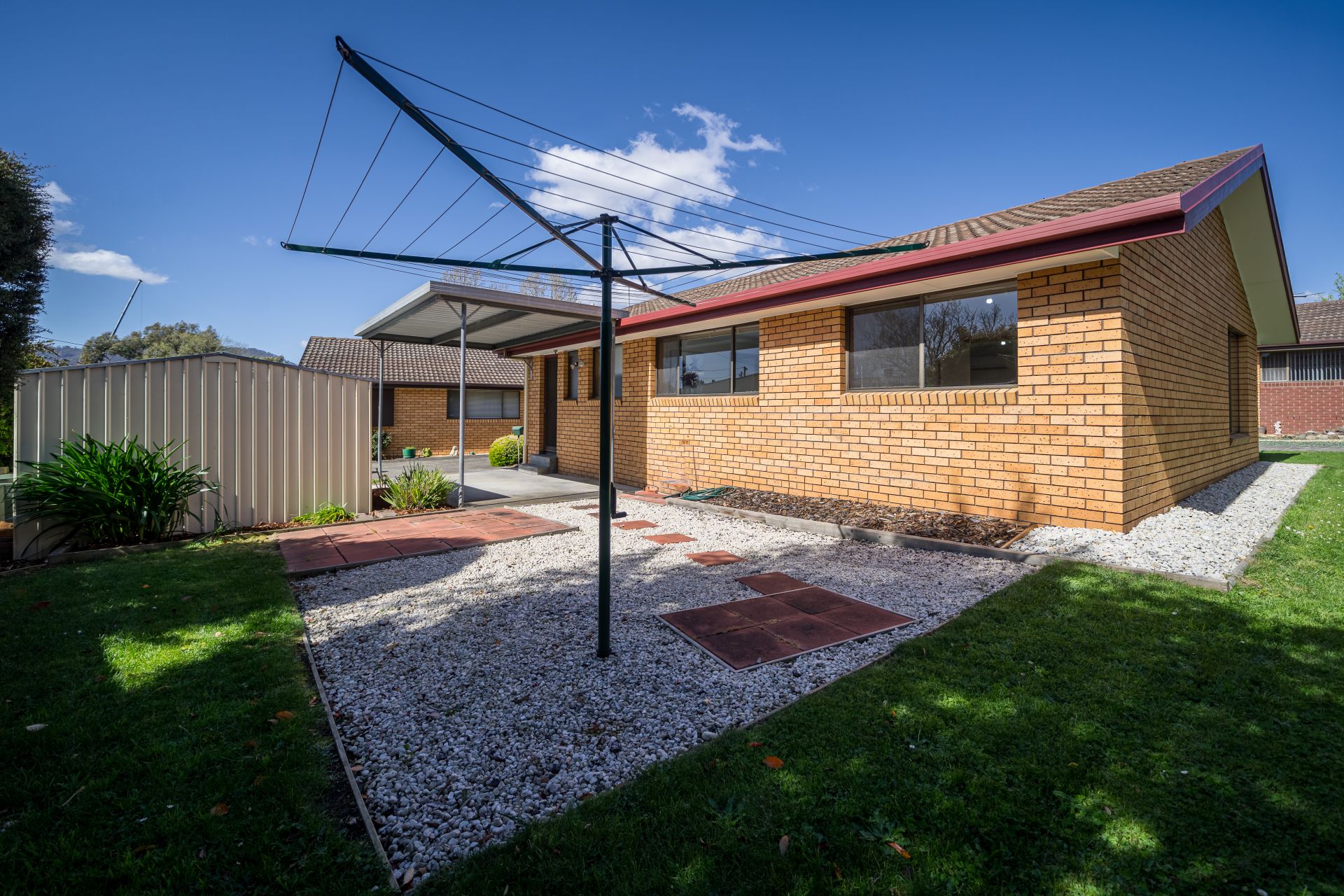 For the utmost in convenience, a single carport with covered access to the unit is located at the side of the villa, offering protection for your vehicle in all weather conditions. Furthermore, the backyard is a true oasis, adorned with mature trees that not only enhance the aesthetics but also provide a serene atmosphere. A garden shed tucked away in this outdoor space ensures you have a dedicated spot to store all your gardening tools and outdoor essentials.