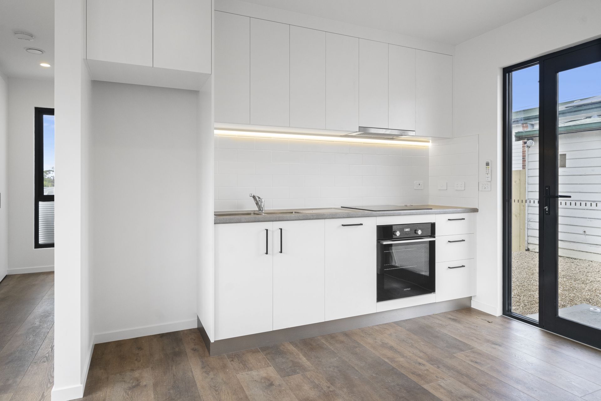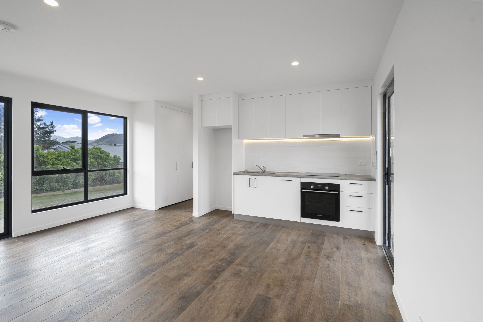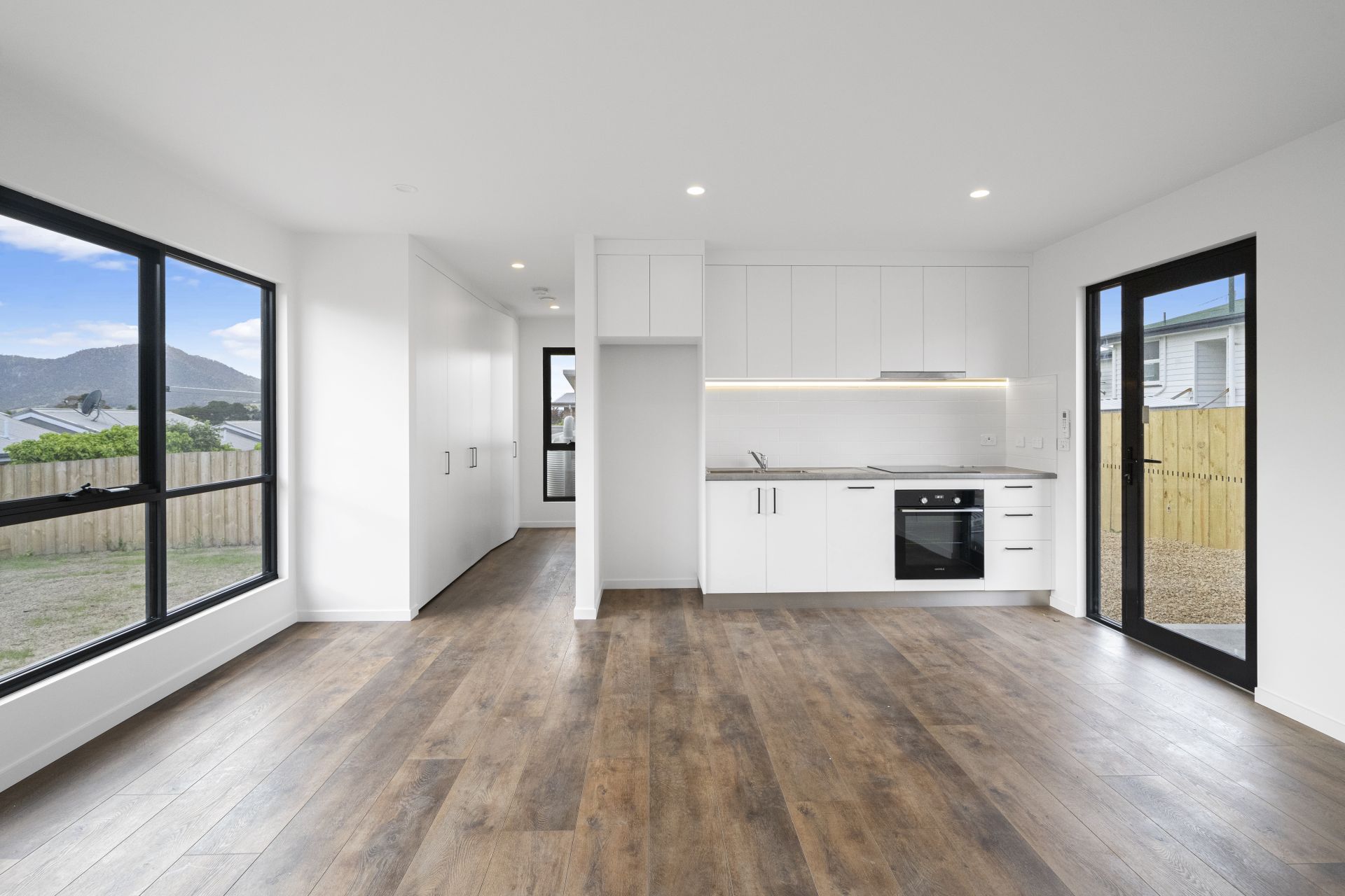 As you step inside, you’re greeted by a spacious open-plan living area that flows seamlessly into a contemporary kitchen. Complete with quality appliances and sleek LED lighting – perfect for entertaining or quiet nights in.