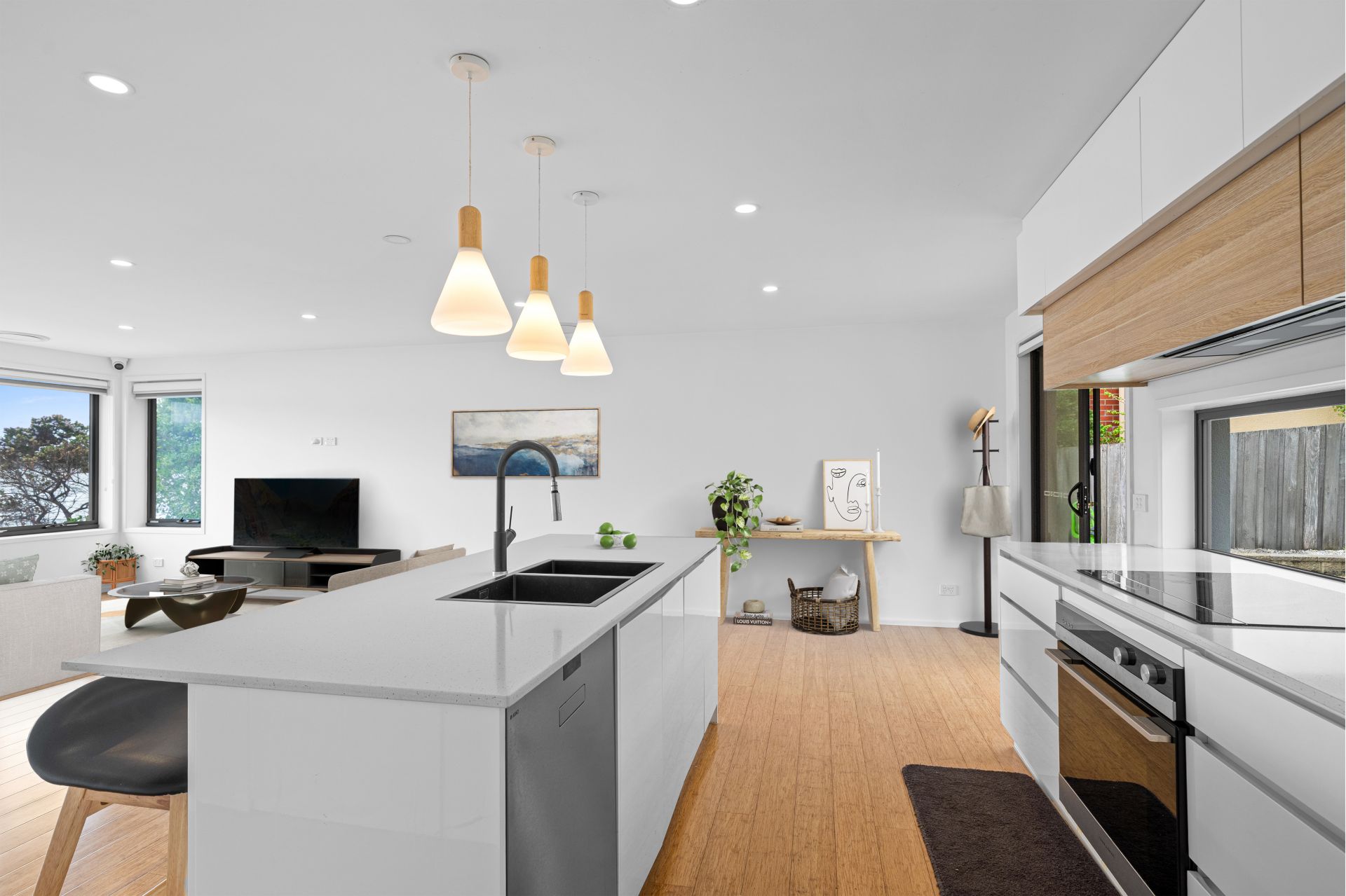 Step inside and turn left to discover an open-plan living area bathed in natural light, with a beautifully renovated kitchen offering generous bench space, modern finishes and sweeping river views. To the right, a split staircase leads upstairs to three spacious bedrooms, including a relaxing master suite and family bathroom. Downstairs features a large rumpus room, additional bedroom and second bathroom, perfect for guests or a private teenage retreat.