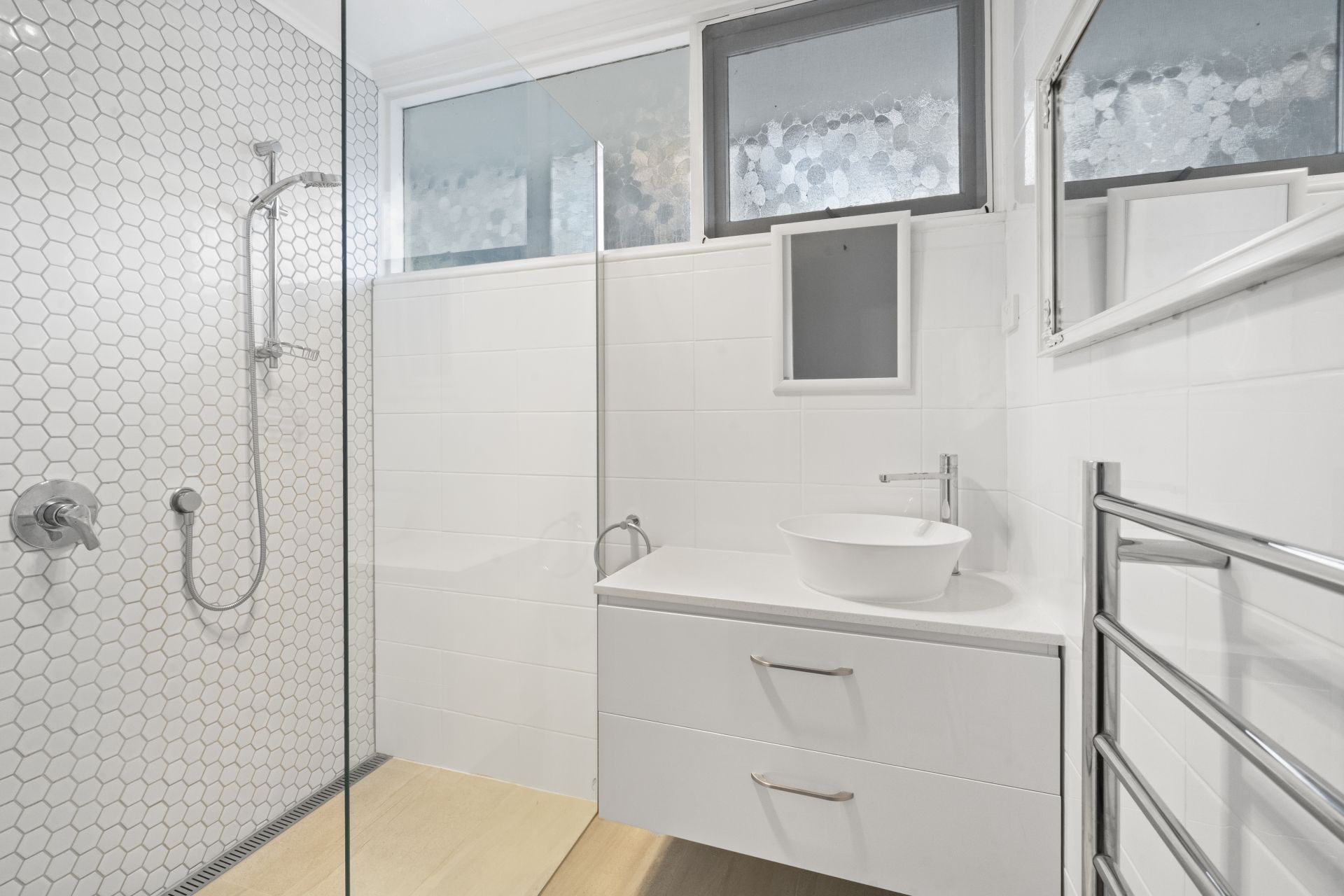 The main bathroom is centrally located and features a beautiful walk in shower, complemented by a separate toilet for added convenience – ideal for busy mornings.