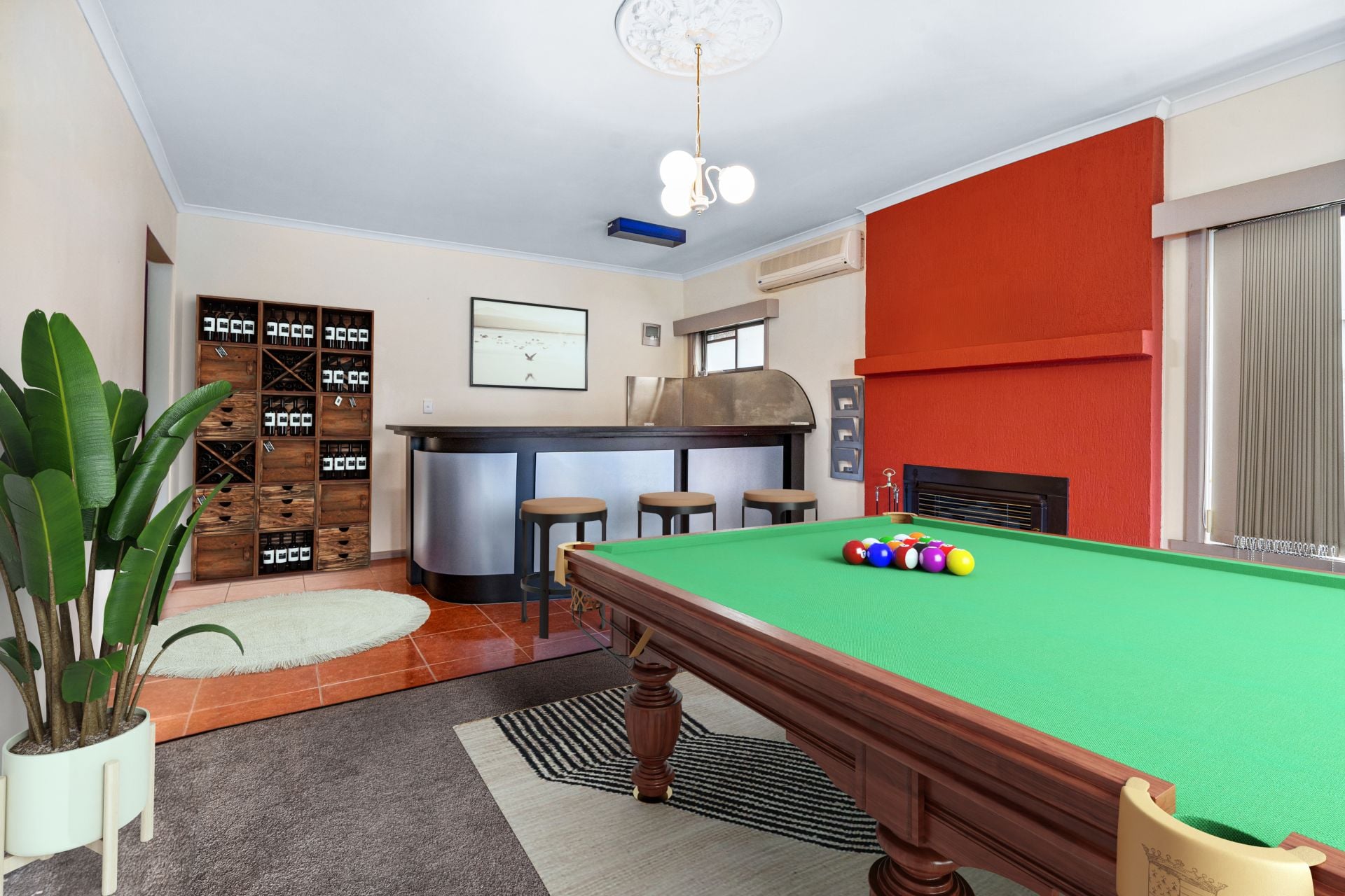 From the bottom floor you have in effect, a complete apartment. Starting with a massive bedroom accompanied by its own ensuite and the downstairs living area shares the space with a bar complete with its own kitchen space. Be it wood fire nights over a game of snooker or enjoyed as another lounge room, there's plenty of space to utilize.