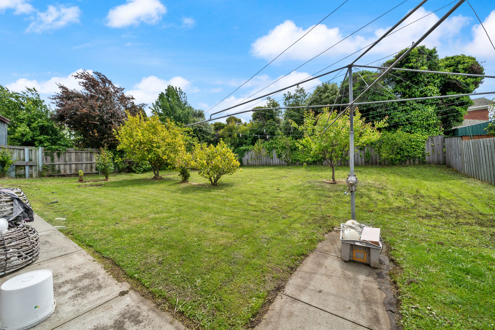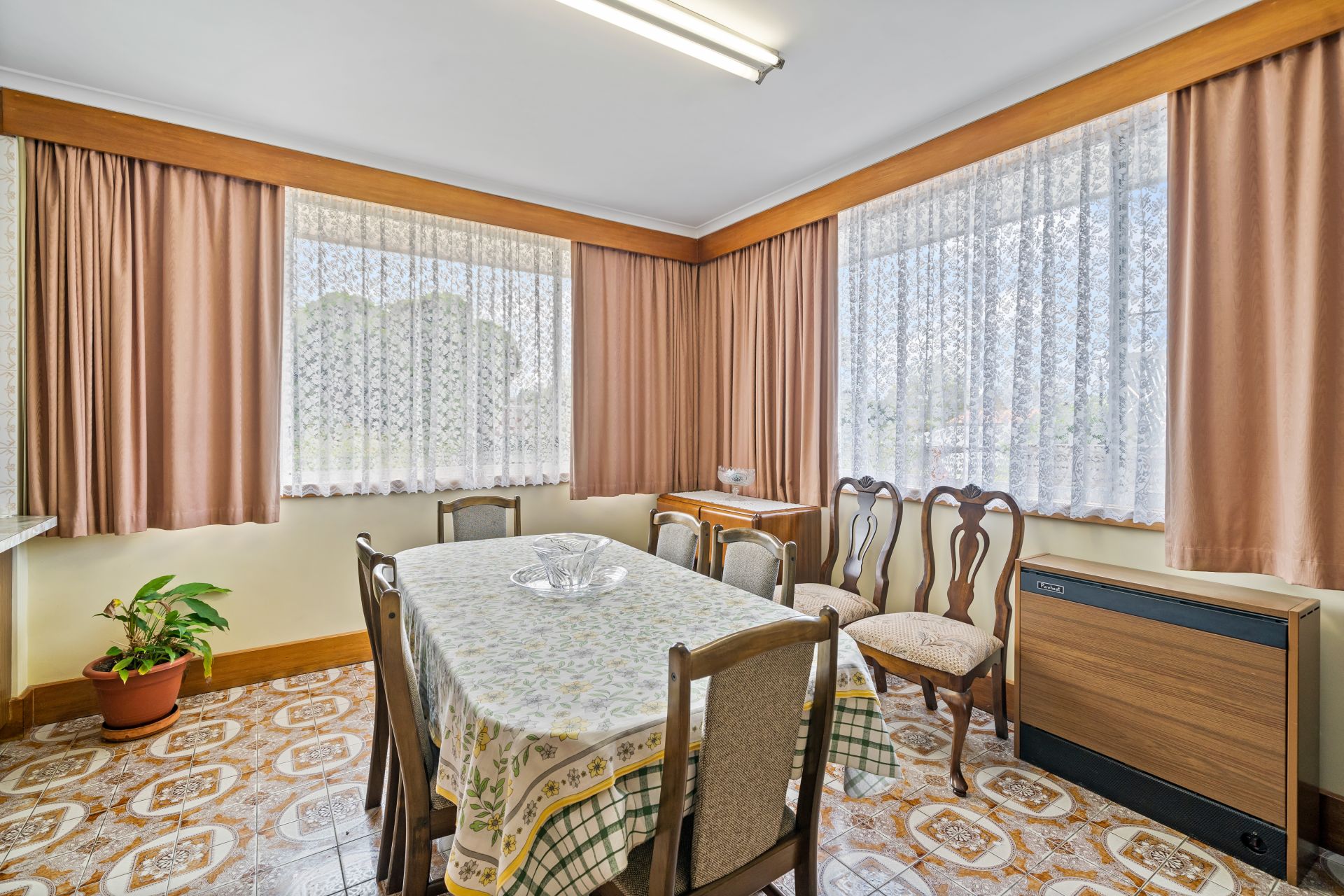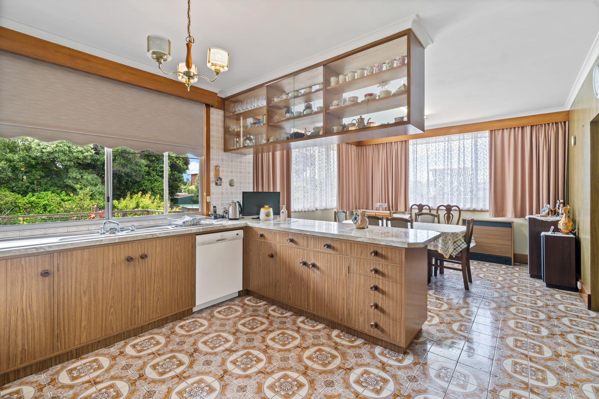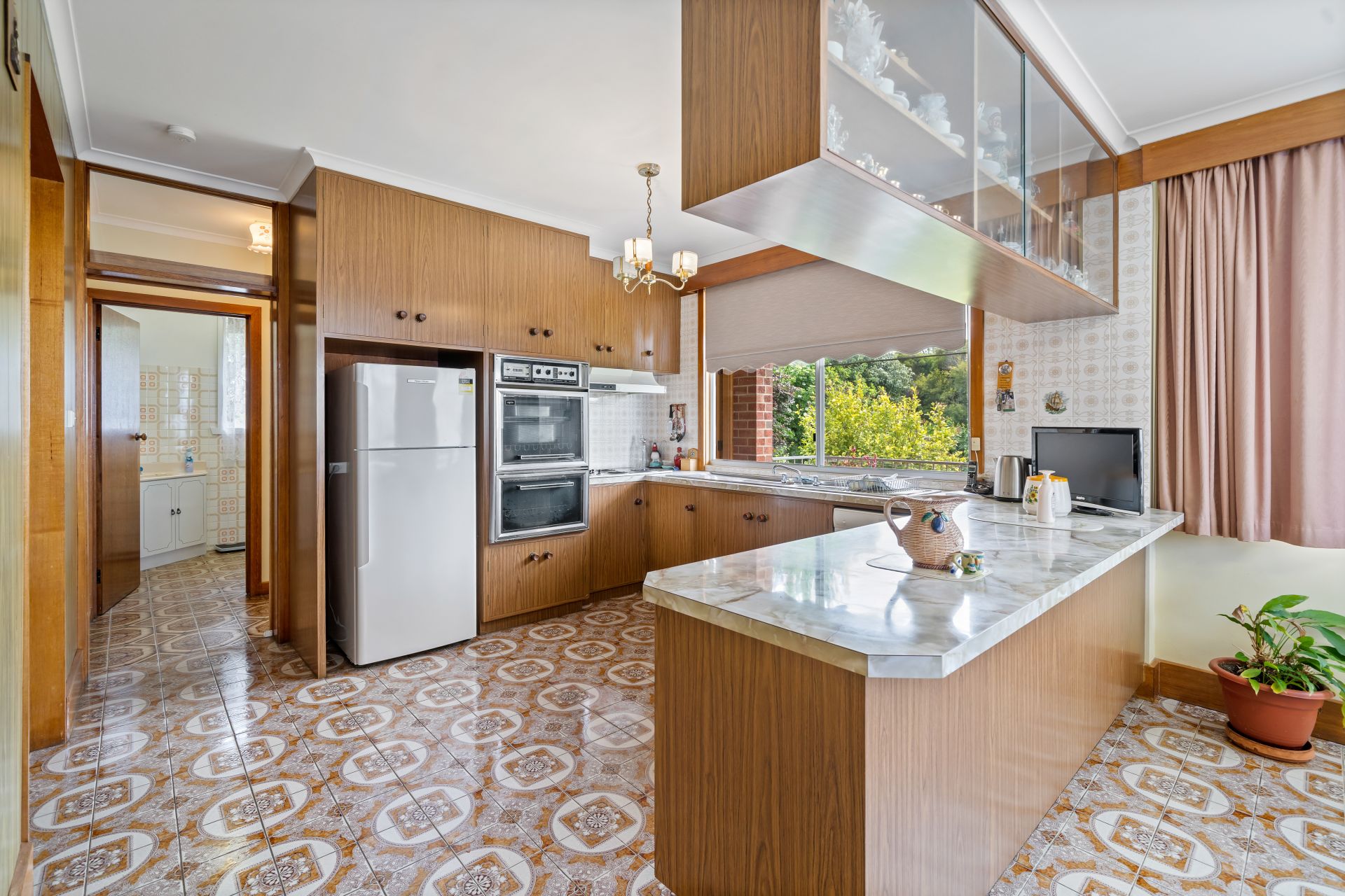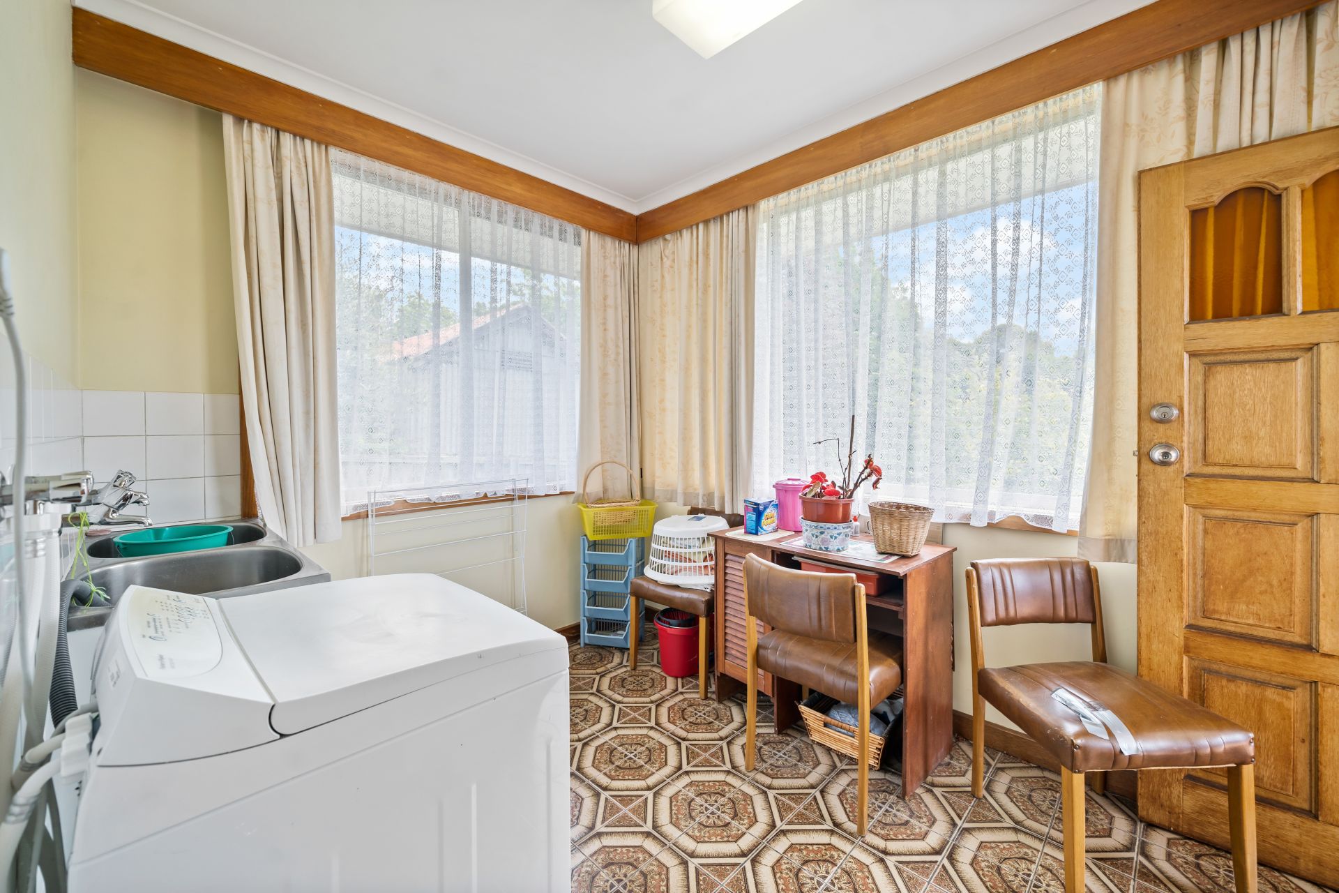 The retro feel of the home continues in the interiors of the bathrooms. There are two available family bathrooms: one near the kitchen and the other one beside the bedrooms. The initial is a 3-piece one with a separate shower while the latter is a 4-piece. A separate room is also allocated for the laundry (large enough to move around freely)--with access to a entertaining and storage under the home. Spacious fully-fenced backyard for your children and pets.