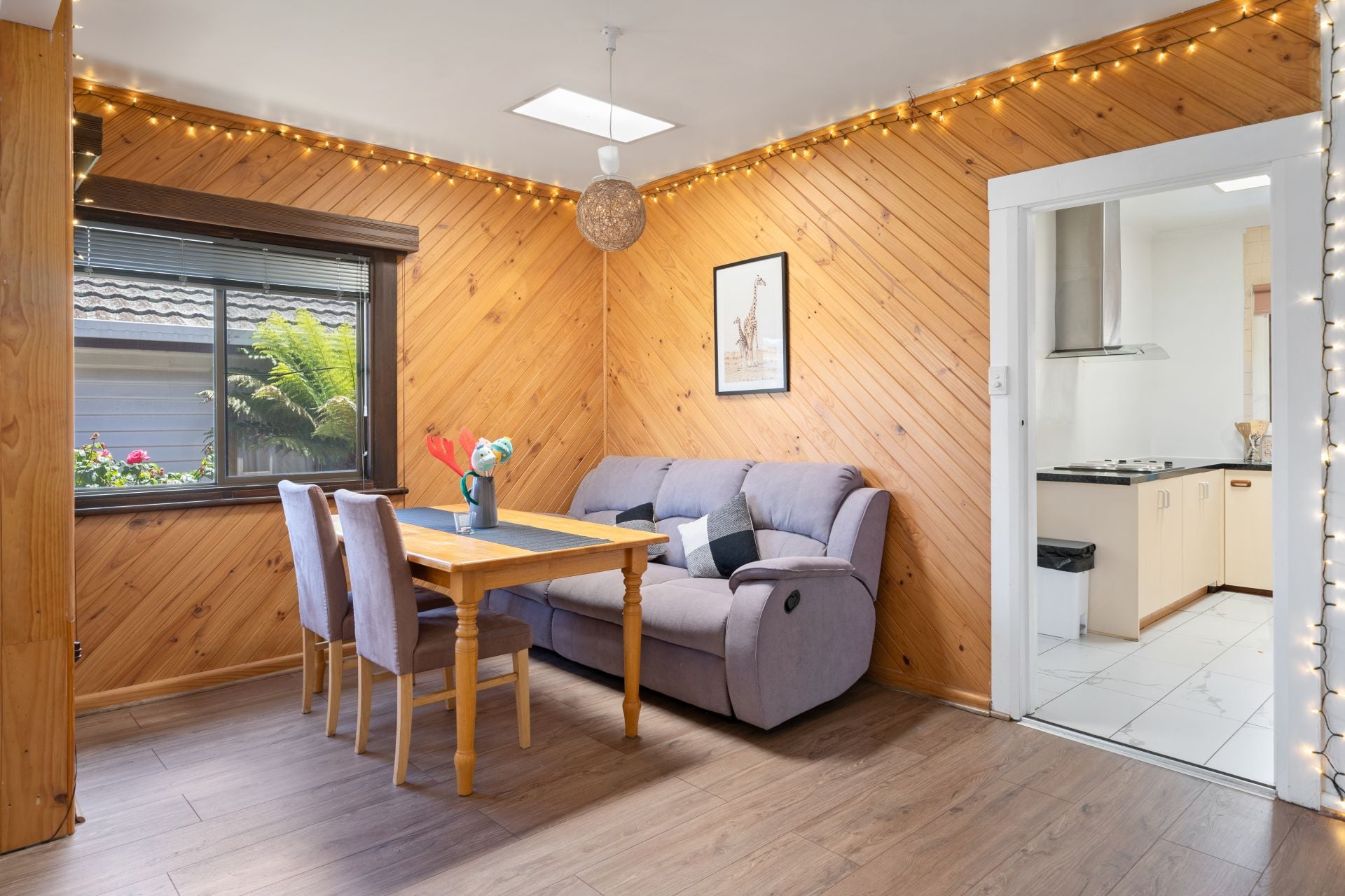 The kitchen offers enough bench space for meals to be prepared and whilst it is a bit smaller than the one in the main dwelling, it is equally functional and utilitarian with all the storage allocated. Finishing the space is also a wood and white-themed 3-piece bathroom that complements the general feel of the home.