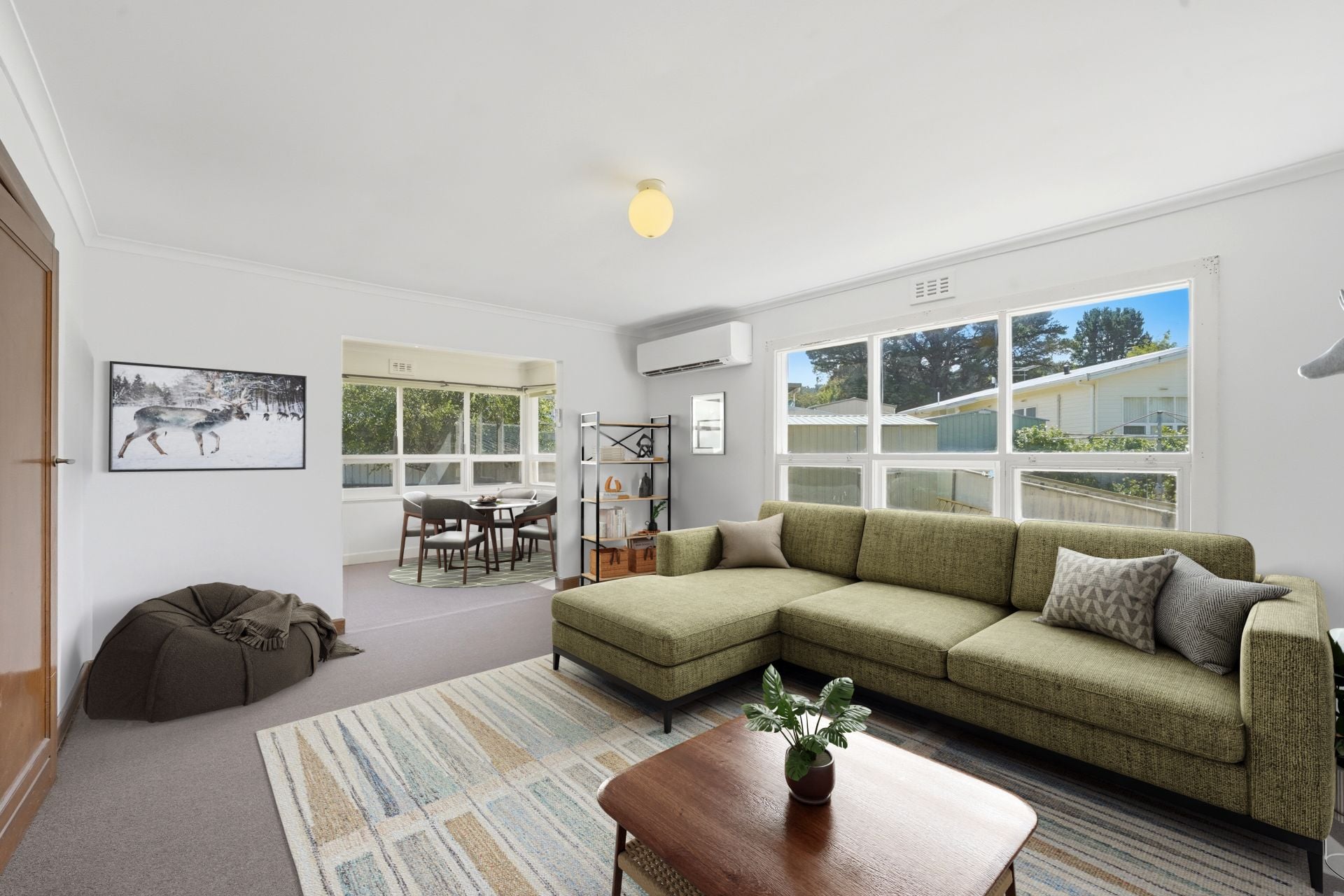 The home itself boasts a large kitchen and dining area with a separate living room with the bonus of an oversized aircon/heat pump.