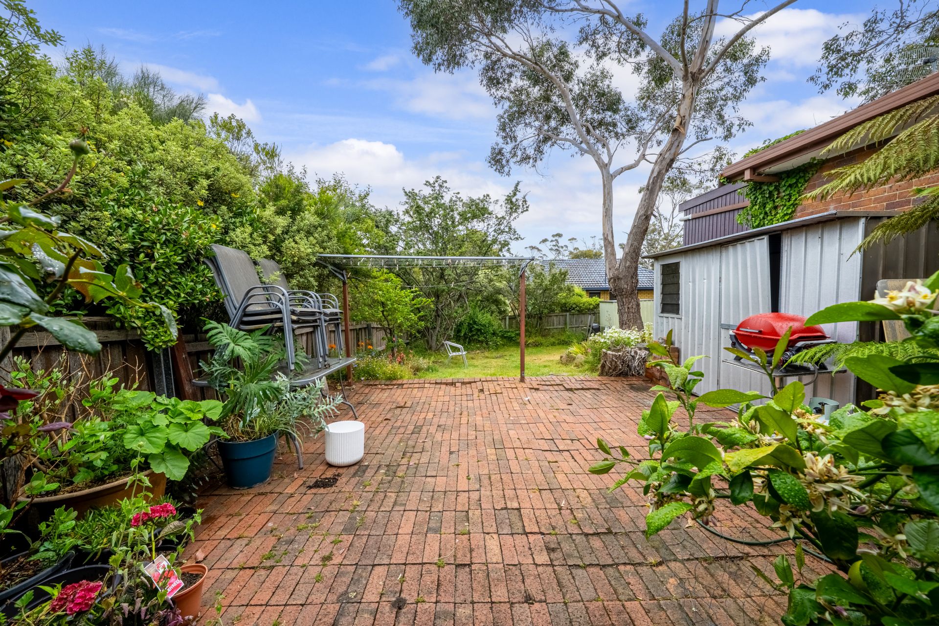 Comfort is assured all year round with the reverse cycle heat pump. The home also includes a separate laundry with external access, a secure garage, additional undercover parking, and plenty of off-street space. Outdoors, the fully fenced backyard offers a brick-paved courtyard, a garden shed, and a lawn surrounded by established trees perfect for relaxing or entertaining.