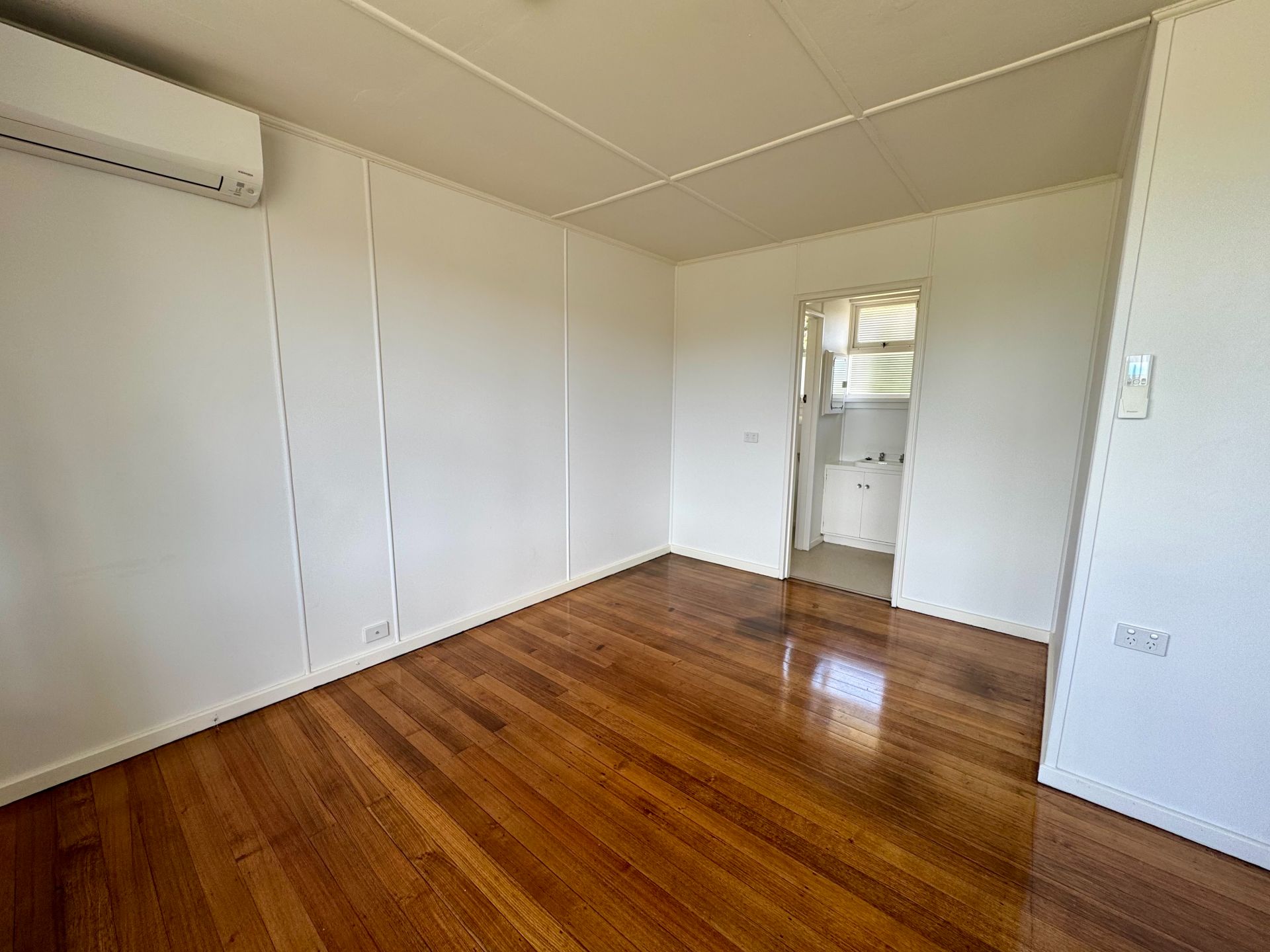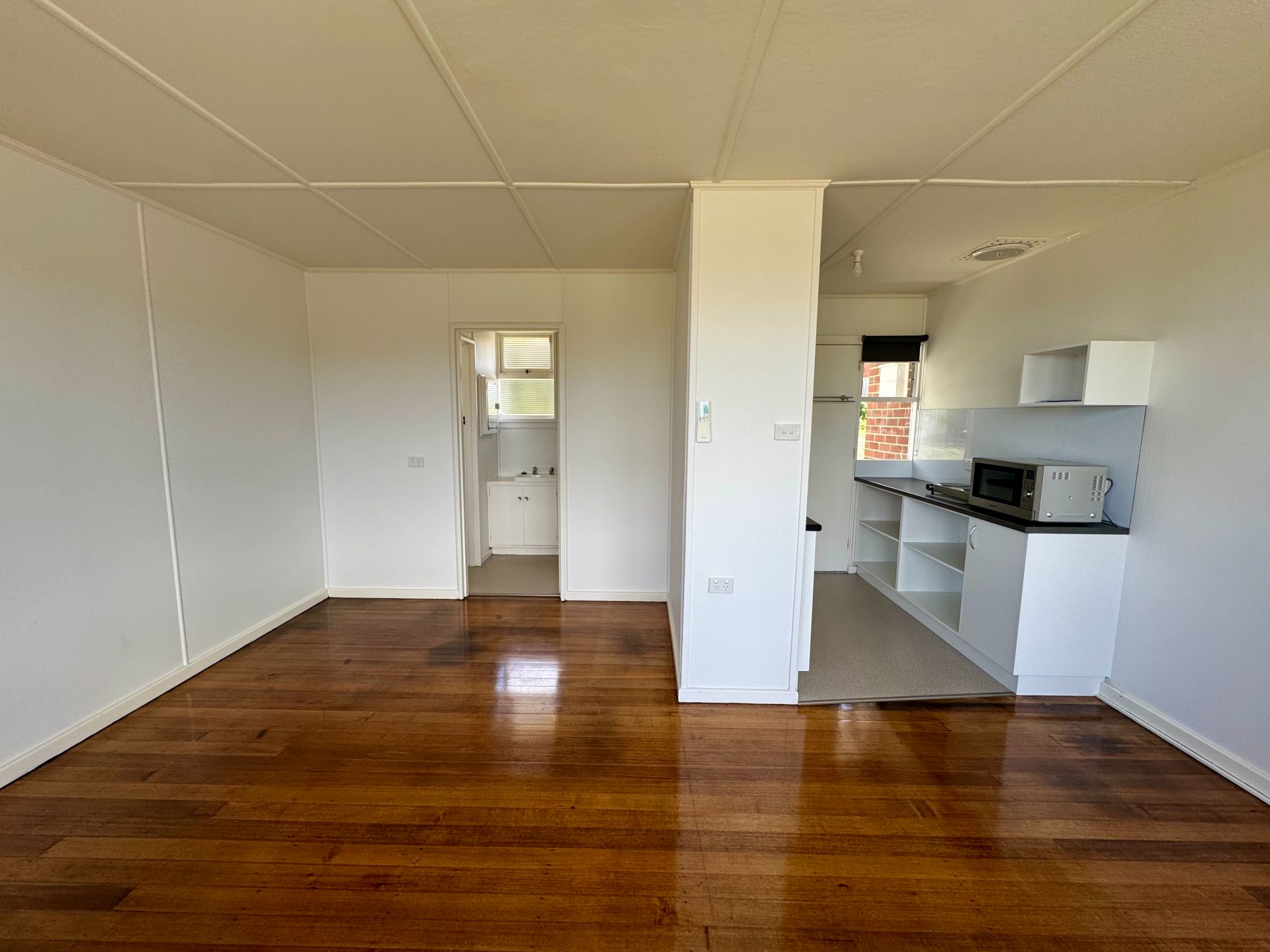 - Sunny living/bedroom area with polished floors