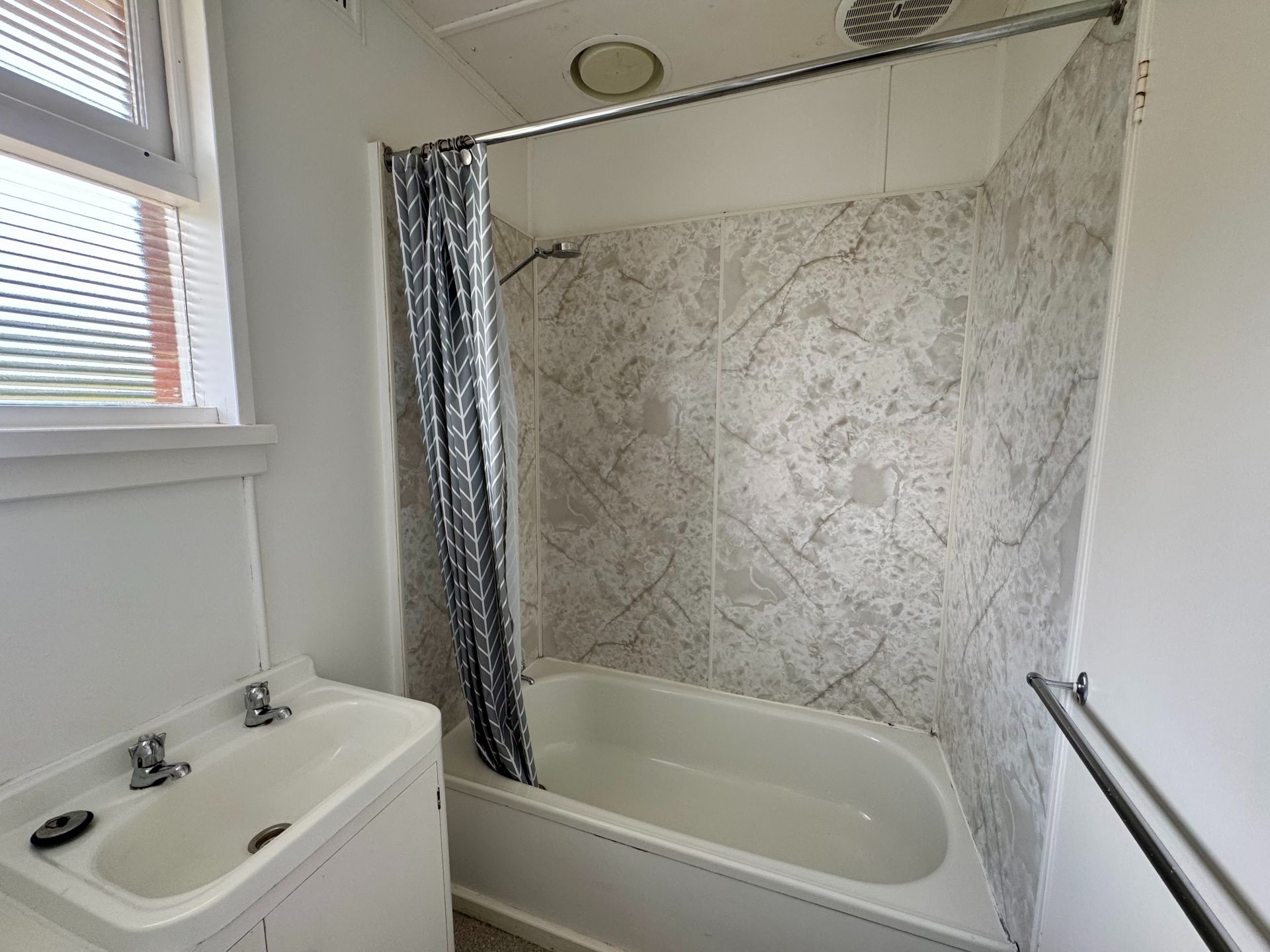 - Bathroom with shower over bath