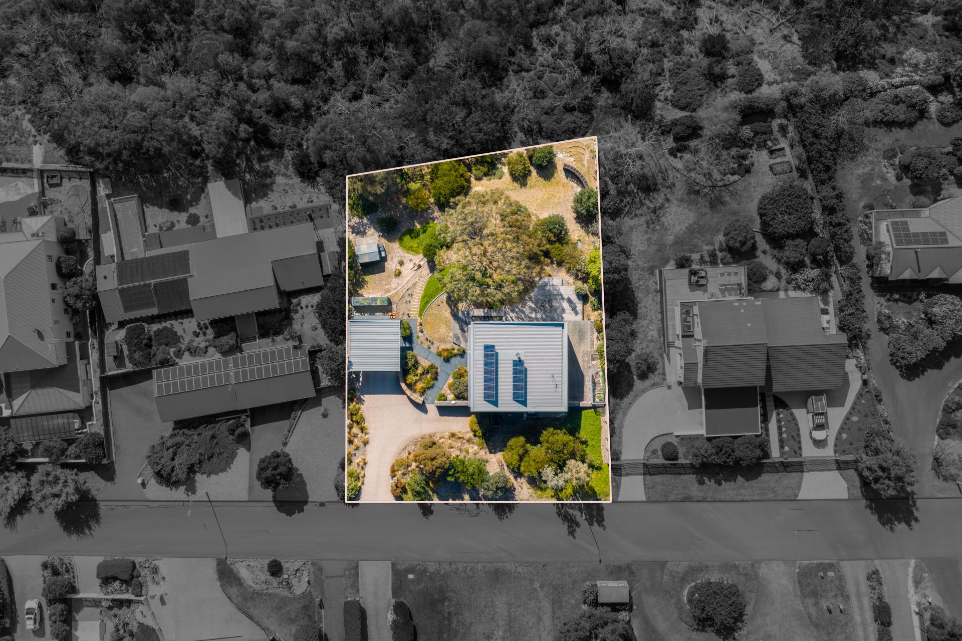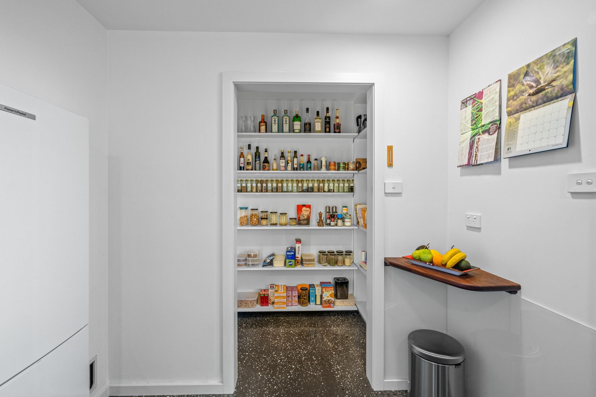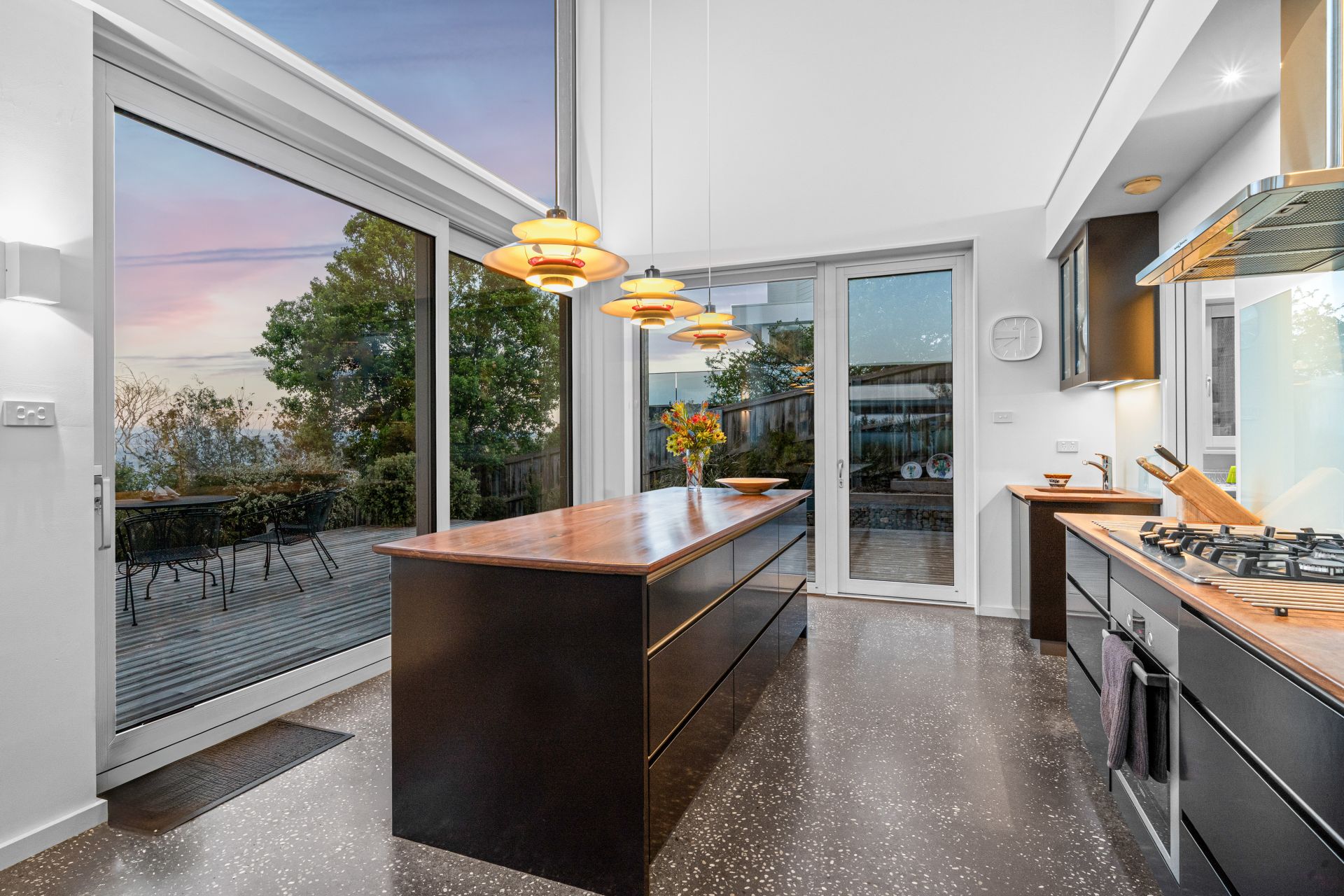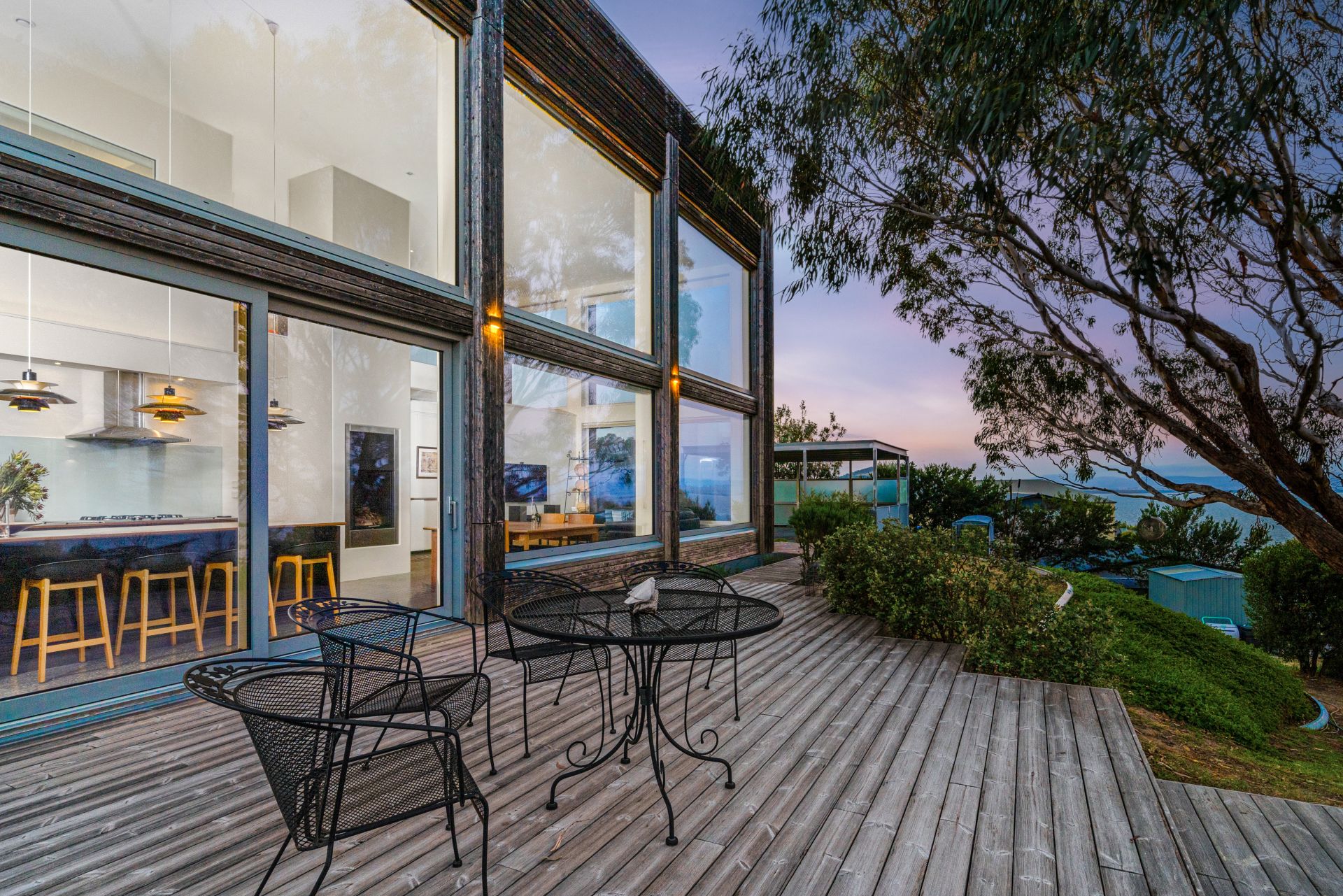 The home's interior reflects a blend of raw and refined materials, softened with a muted palette that integrates seamlessly with the surrounding landscape. The gourmet kitchen with bonus scullery and pantry is a true centrepiece, its double-height space flowing to open-plan dining and living areas that open to expansive decks. In addition to three large bedrooms and a spacious desk area, a large downstairs room with an external door offers potential for a home office, small business, games room, wine bar or copious storage.