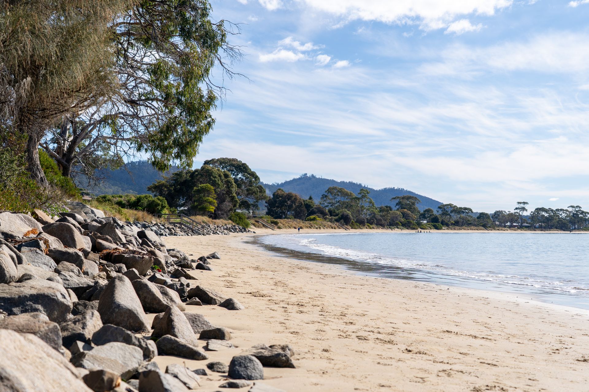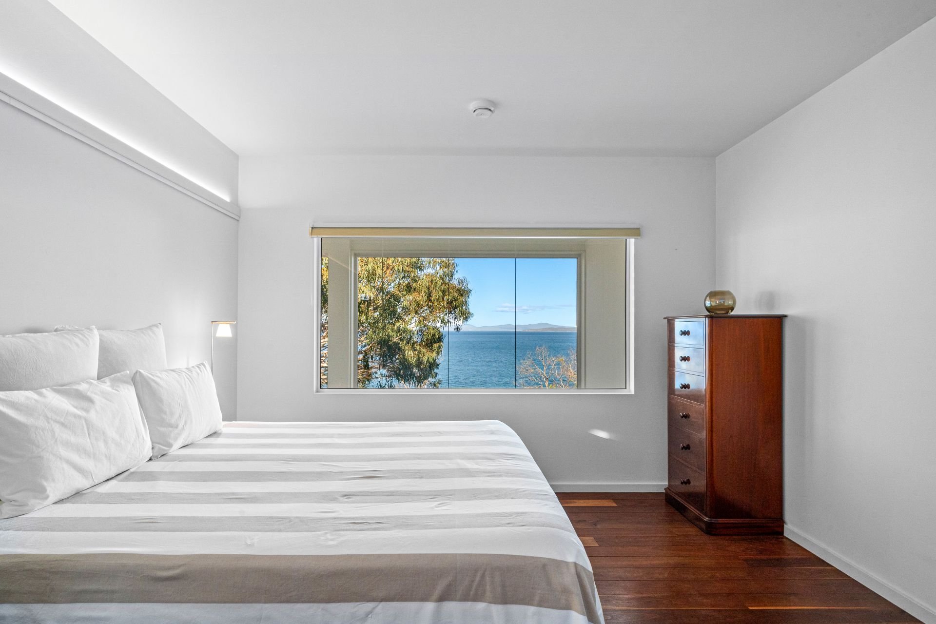 Wake to awe-inspiring sunrises and admire moonrises over Frederick Henry Bay, watch sea eagles soar, and walk directly from your drought-tolerant native garden down to the golden sands of Mays Surf Beach and Lauderdale and Roches Beaches. Nature is quite literally at your doorstep, with natural coastal bushland alive with native wildlife that shares your magnificent property.