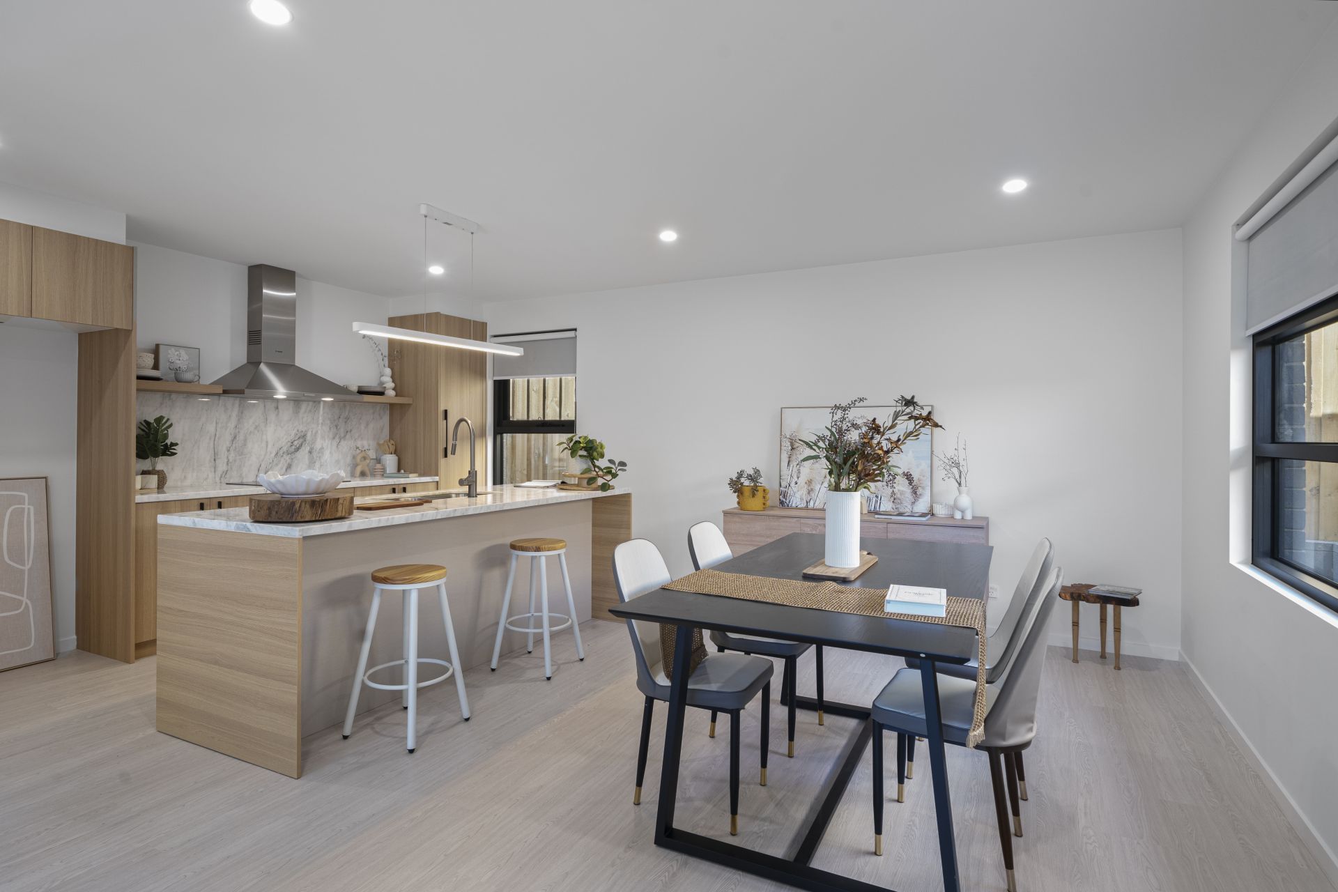 The light-filled living and dining area creates an inviting atmosphere, ideal for both casual and formal gatherings.