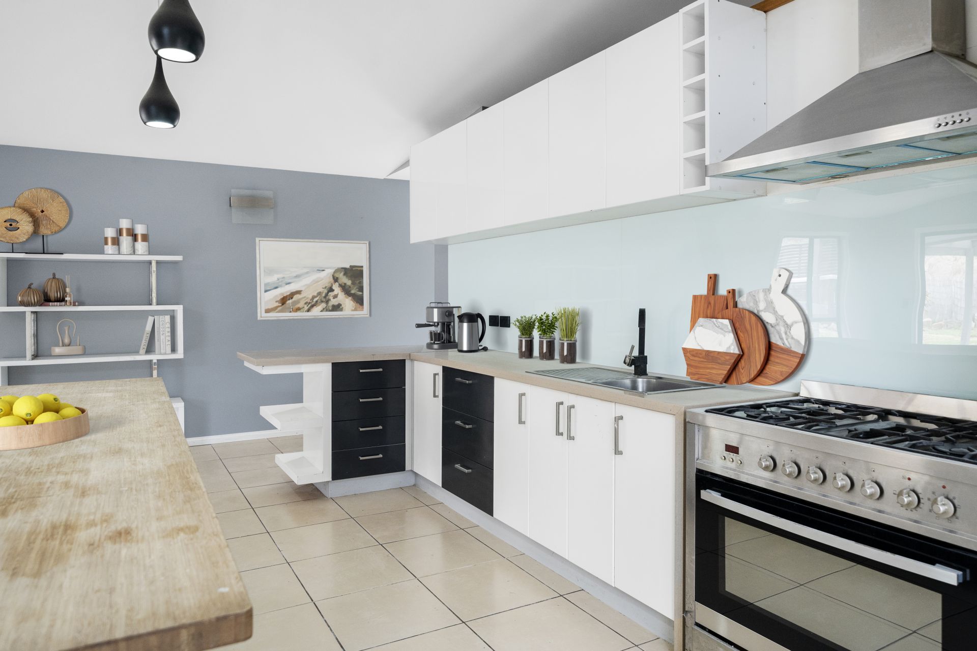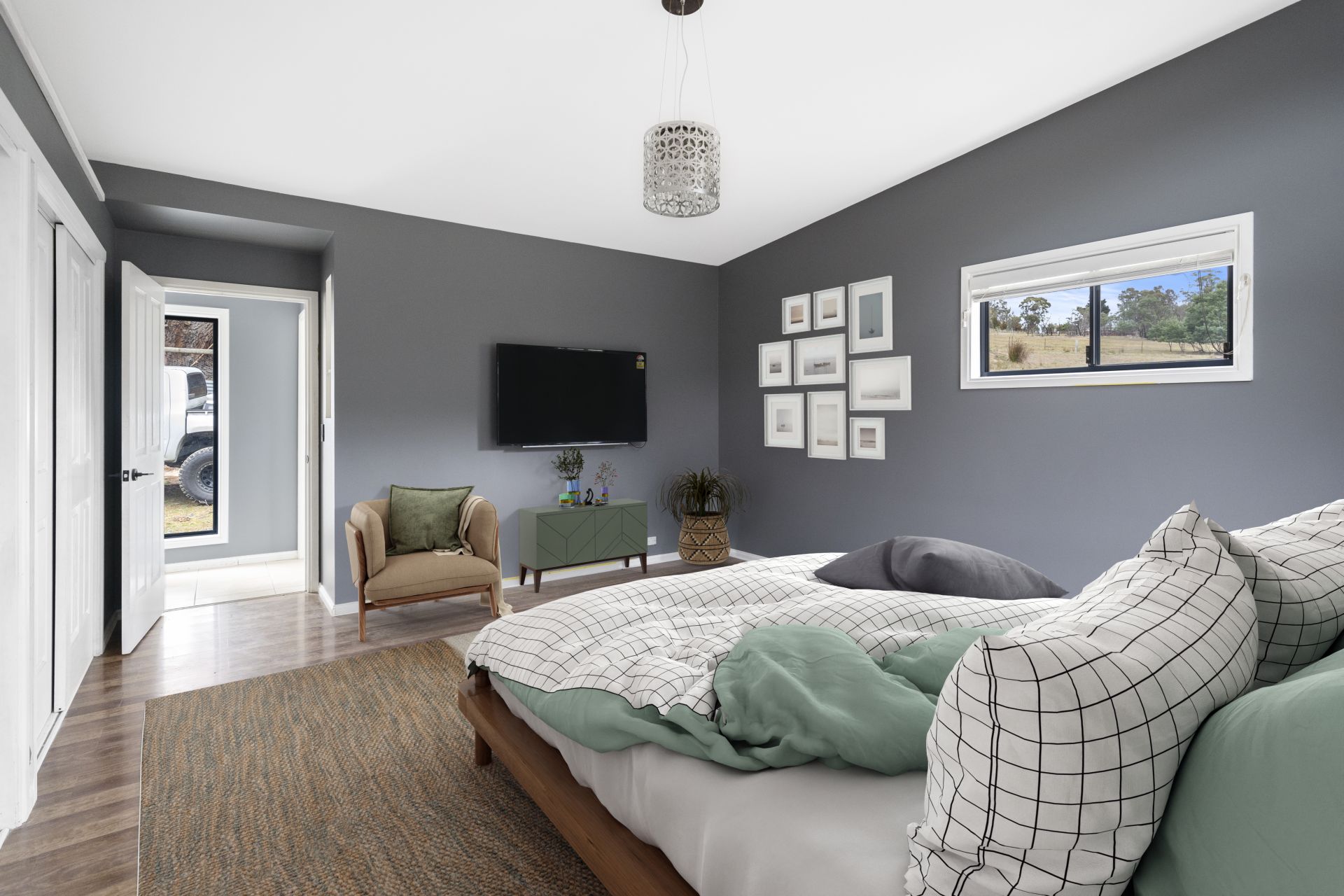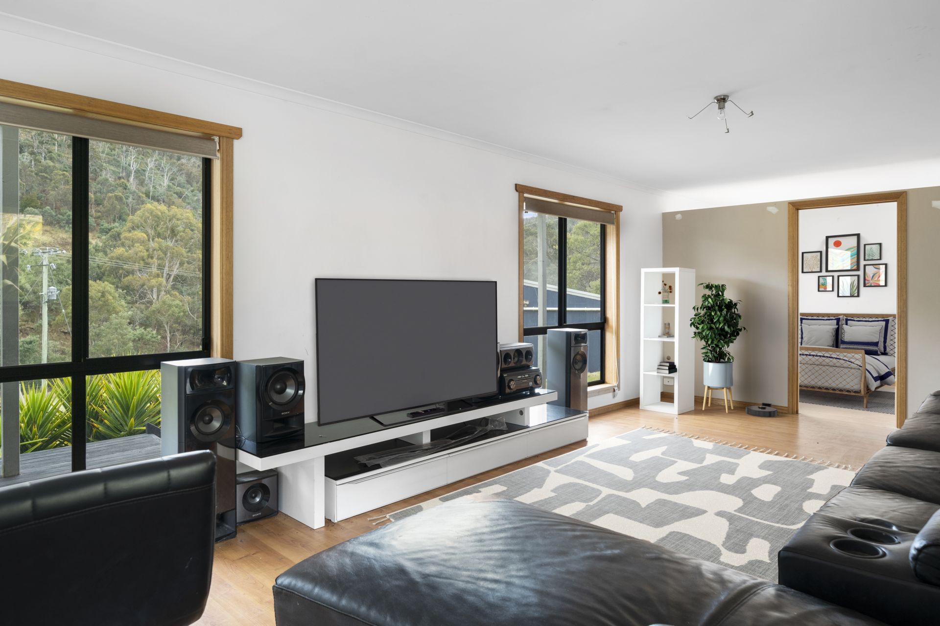 The second living area is an impressive open-plan space with a modern kitchen. It includes a third large bedroom with a full wall of built-in robes and a stylish bathroom with a spa.