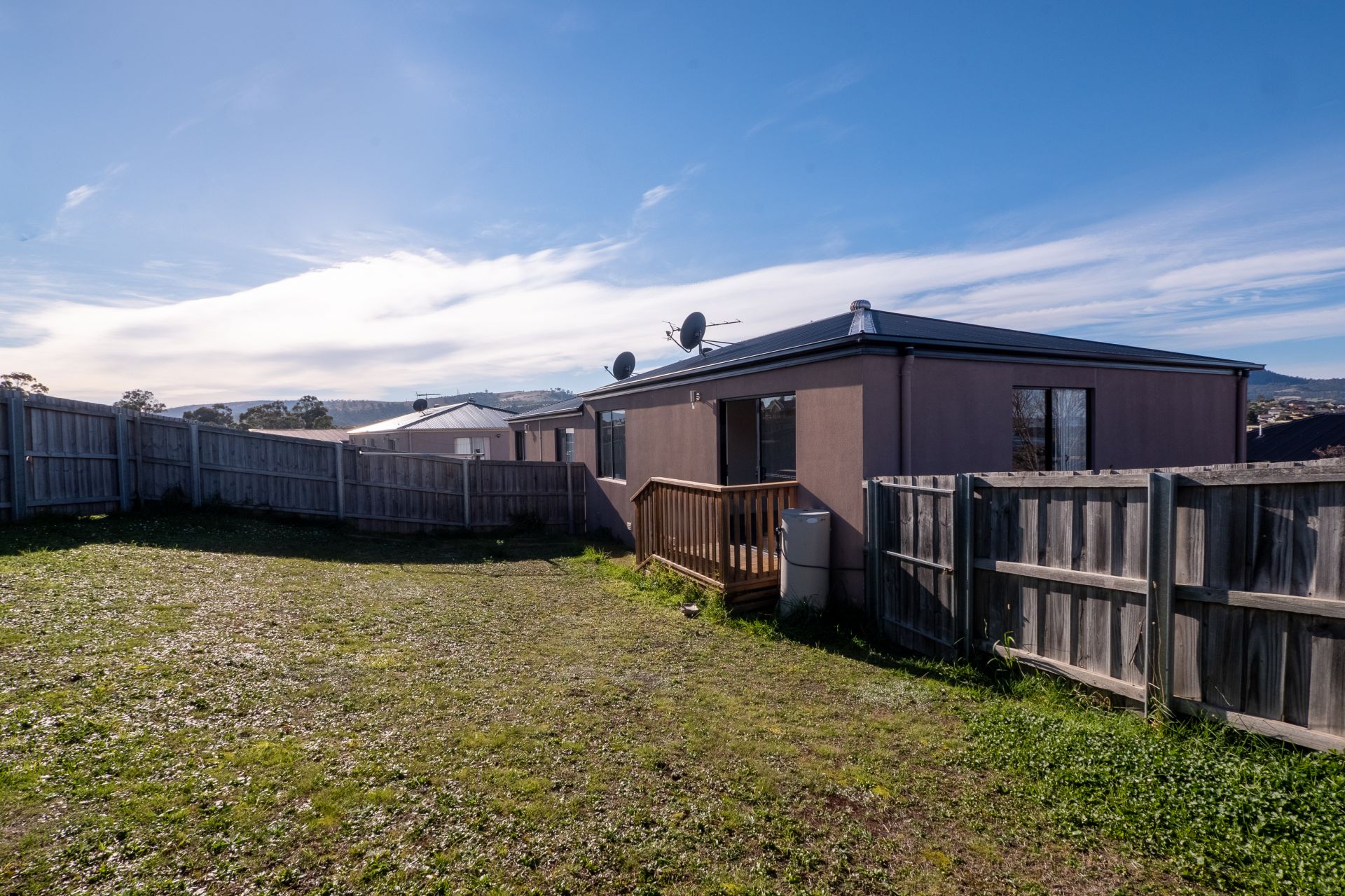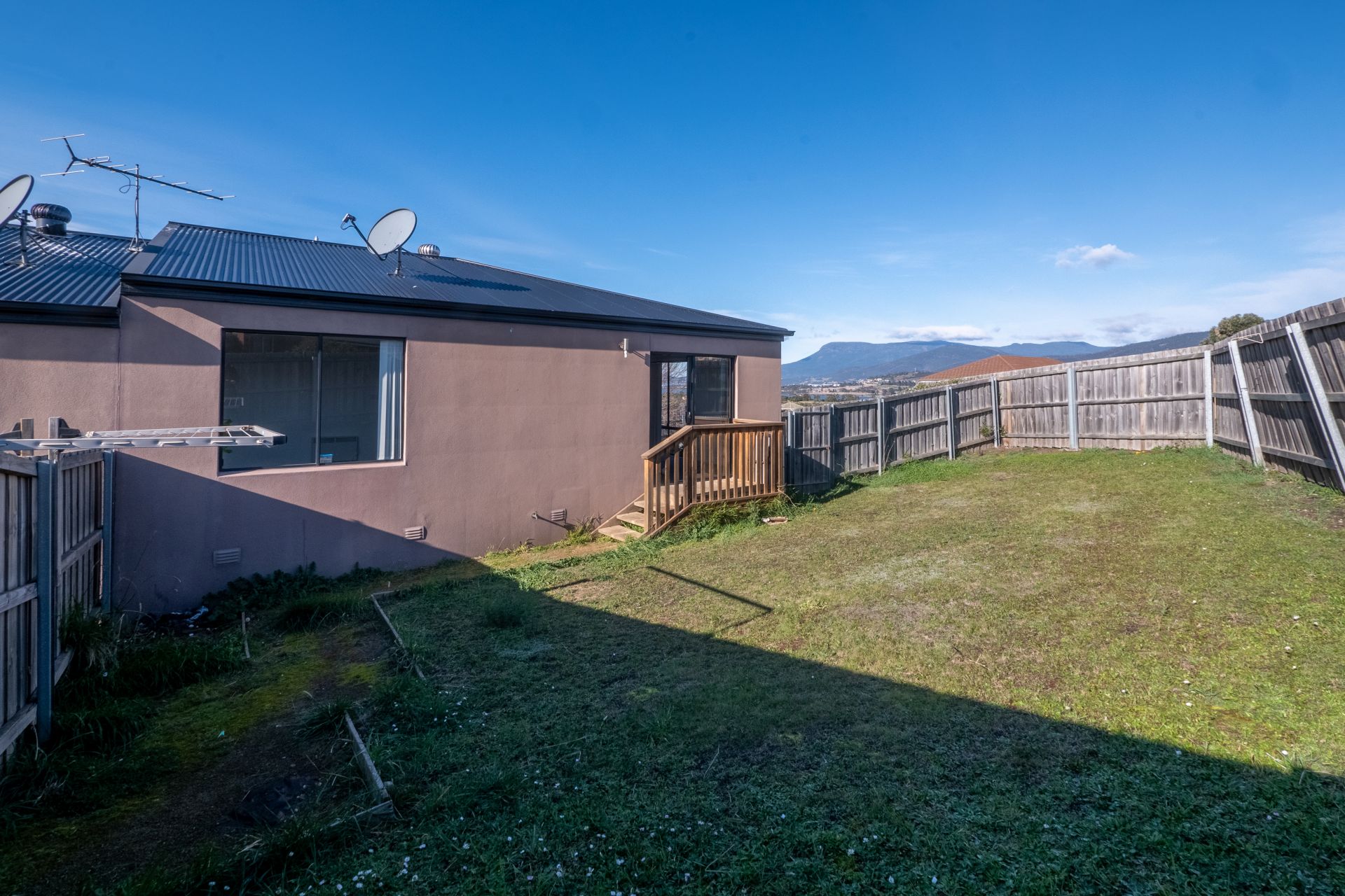 Outside is a good size fully fenced yard. Unfortunately pets are not accepted in this complex.