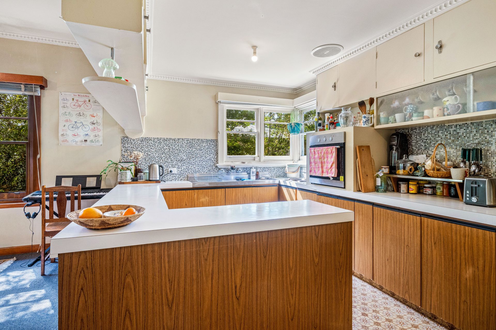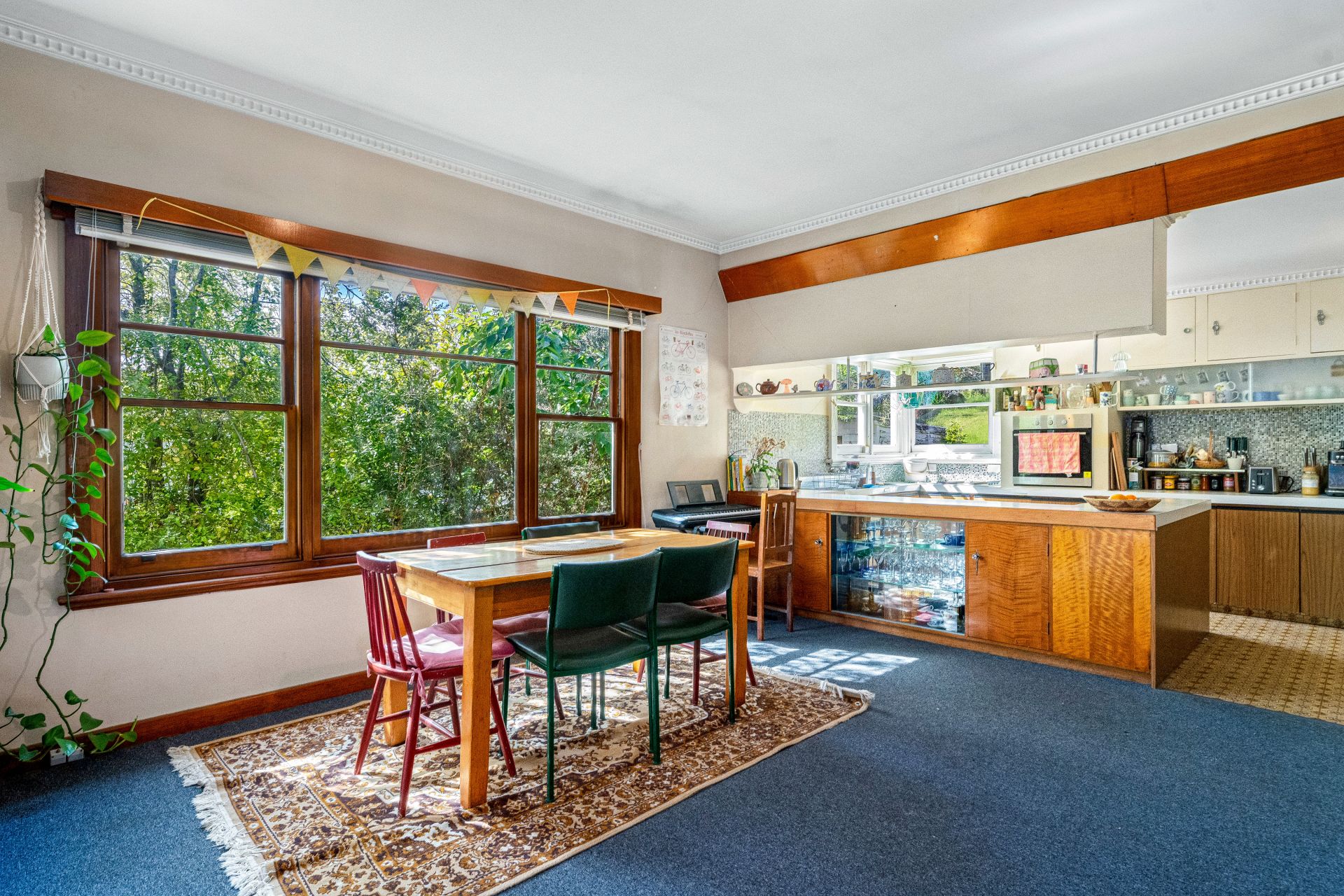 The layout is flexible with the almost open plan design, with the lounge sitting proudly at the front of the home soaking in the North-Easterly sun, it can be easily shut away by the double sliding doors. The kitchen is still in original condition with updated appliances, plenty of bench space and storage options. Conjoining the kitchen is a generous dining room, designed for family meal times.