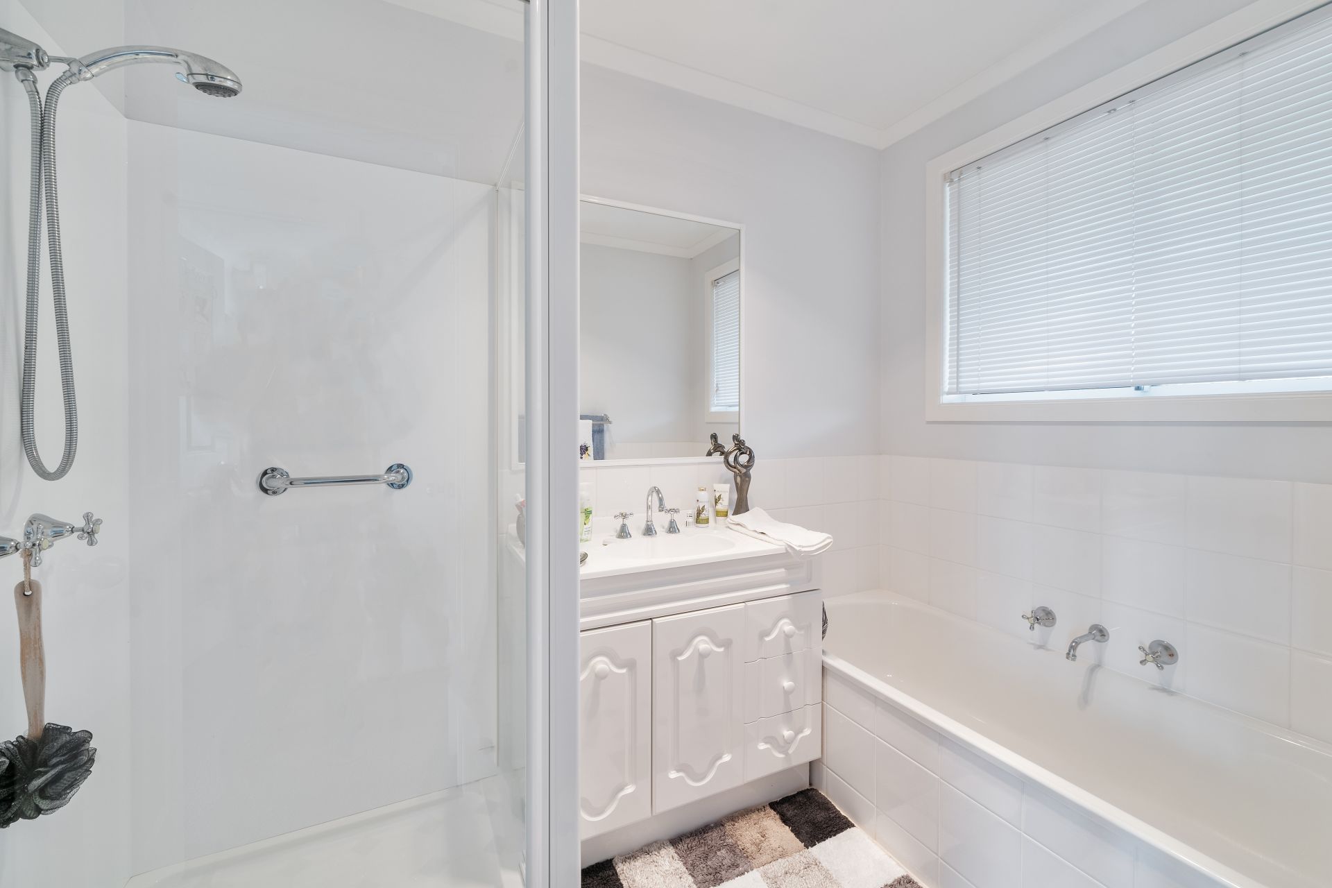 The bathroom features a separate shower and bath. There is also a separate laundry and separate toilet.