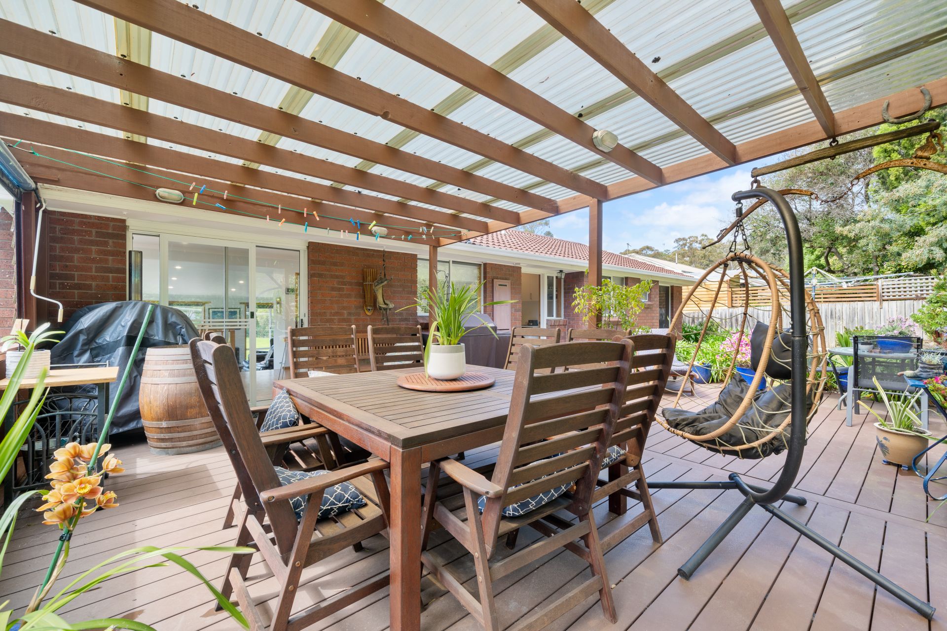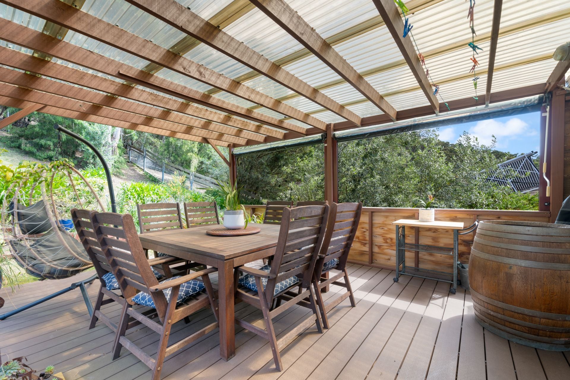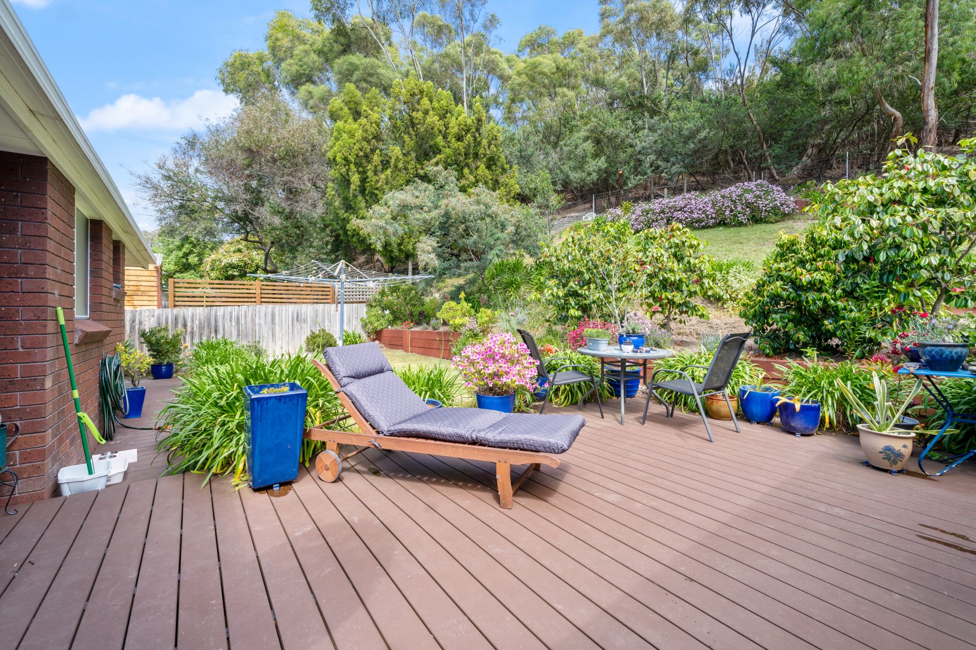 - Outdoor patio and extended deck overlooking the landscape private gardens