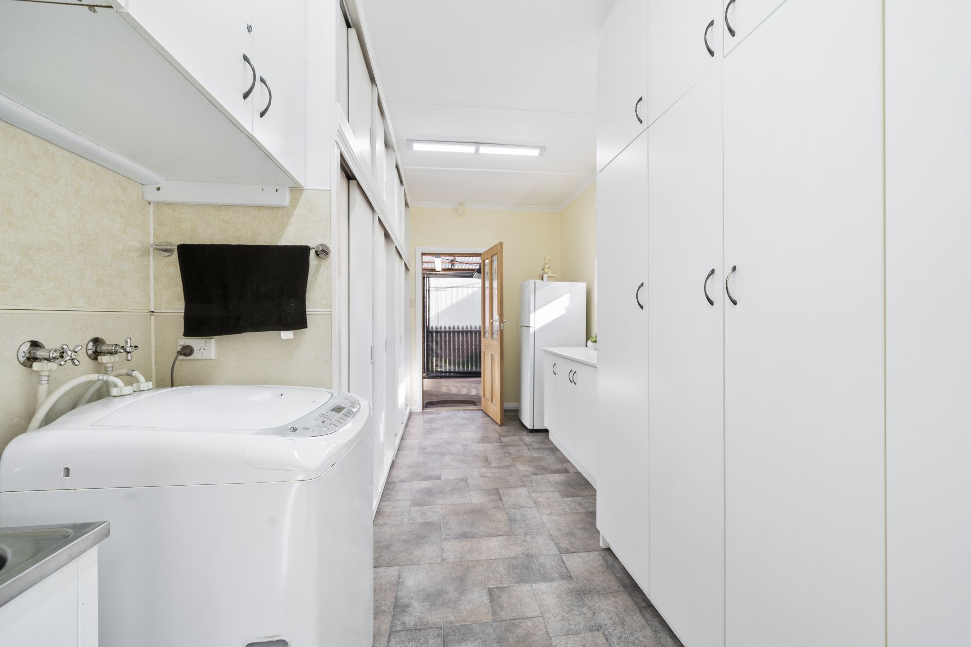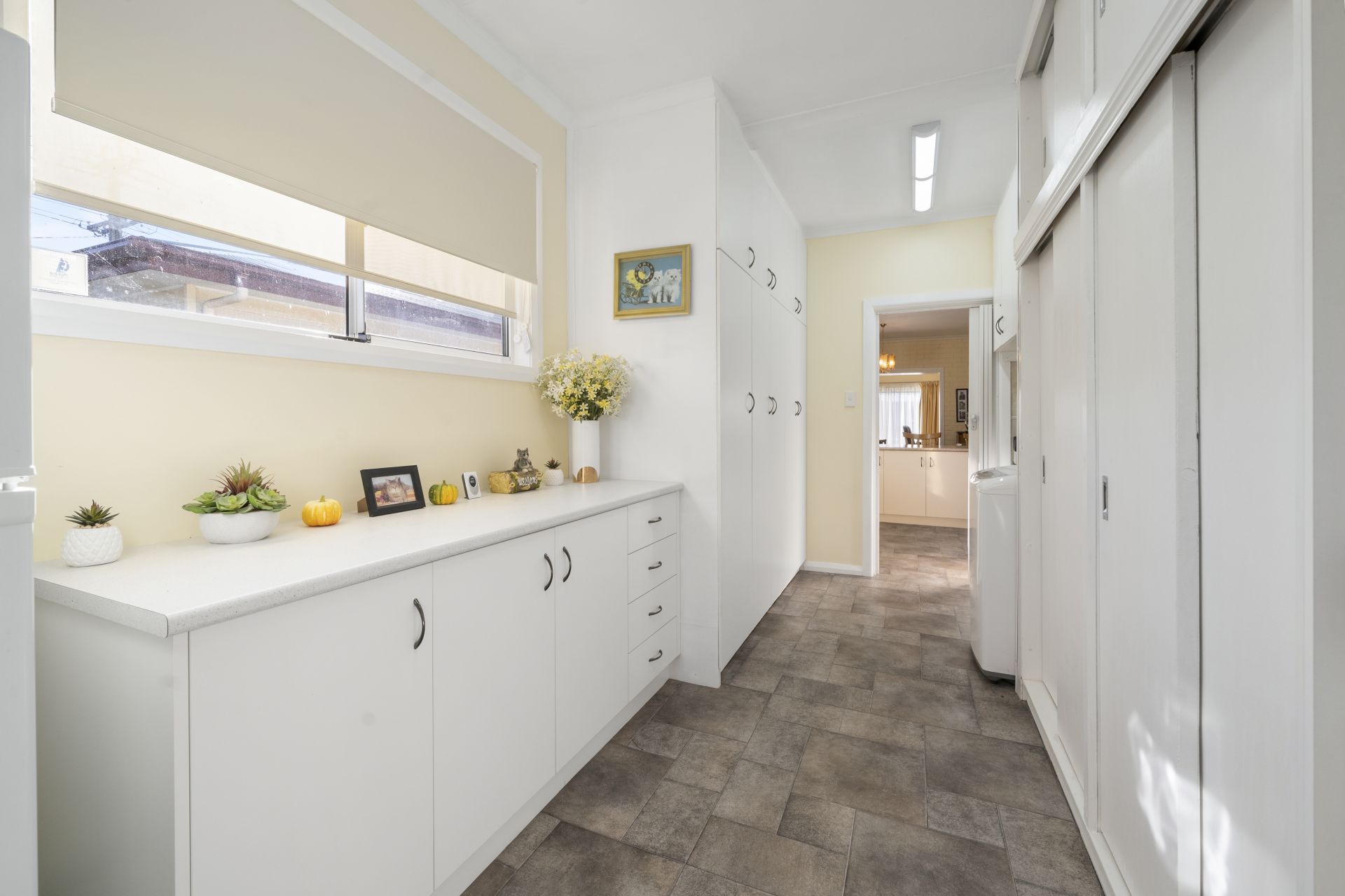 The laundry showcases an abundance of storage adjacent to the kitchen and to house those tools and bigger items, there is plenty of room in the double garage and under home area.